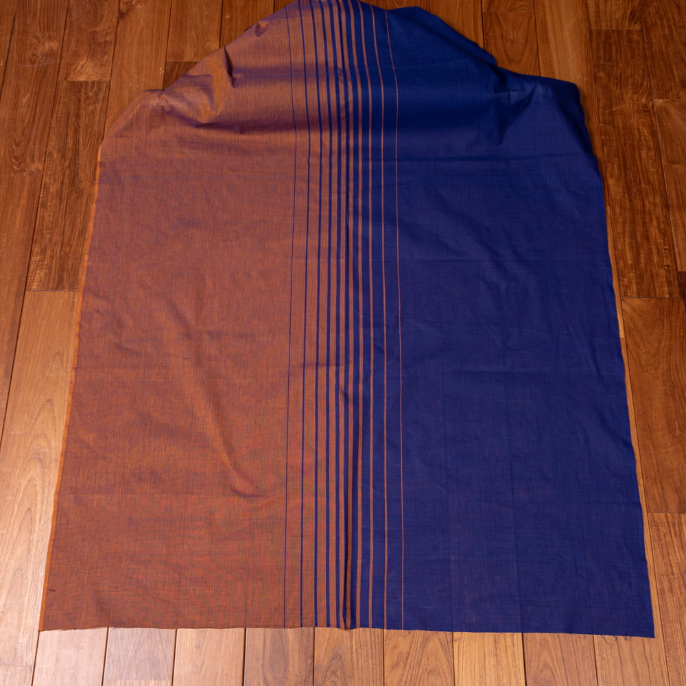 〔1m単位切り売り〕南インドのバイカラーセンターストライプ布〔幅約108cm〕 - 青緑×パープル 通販店