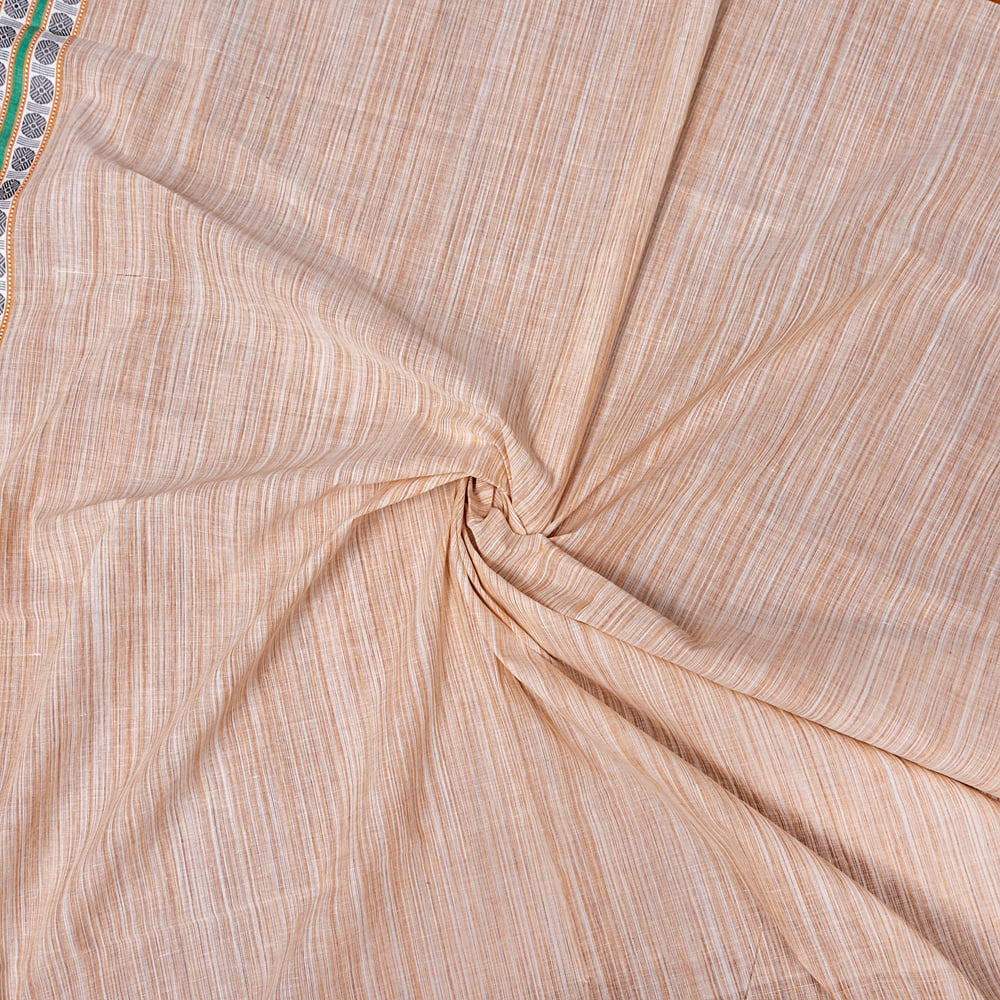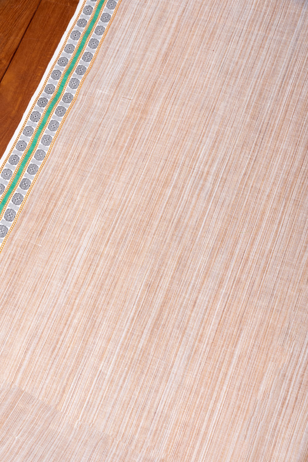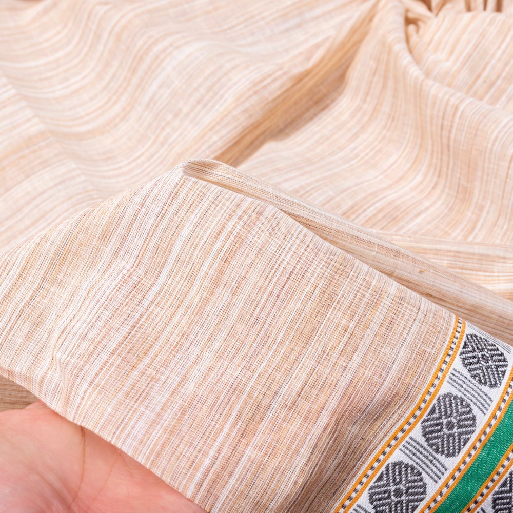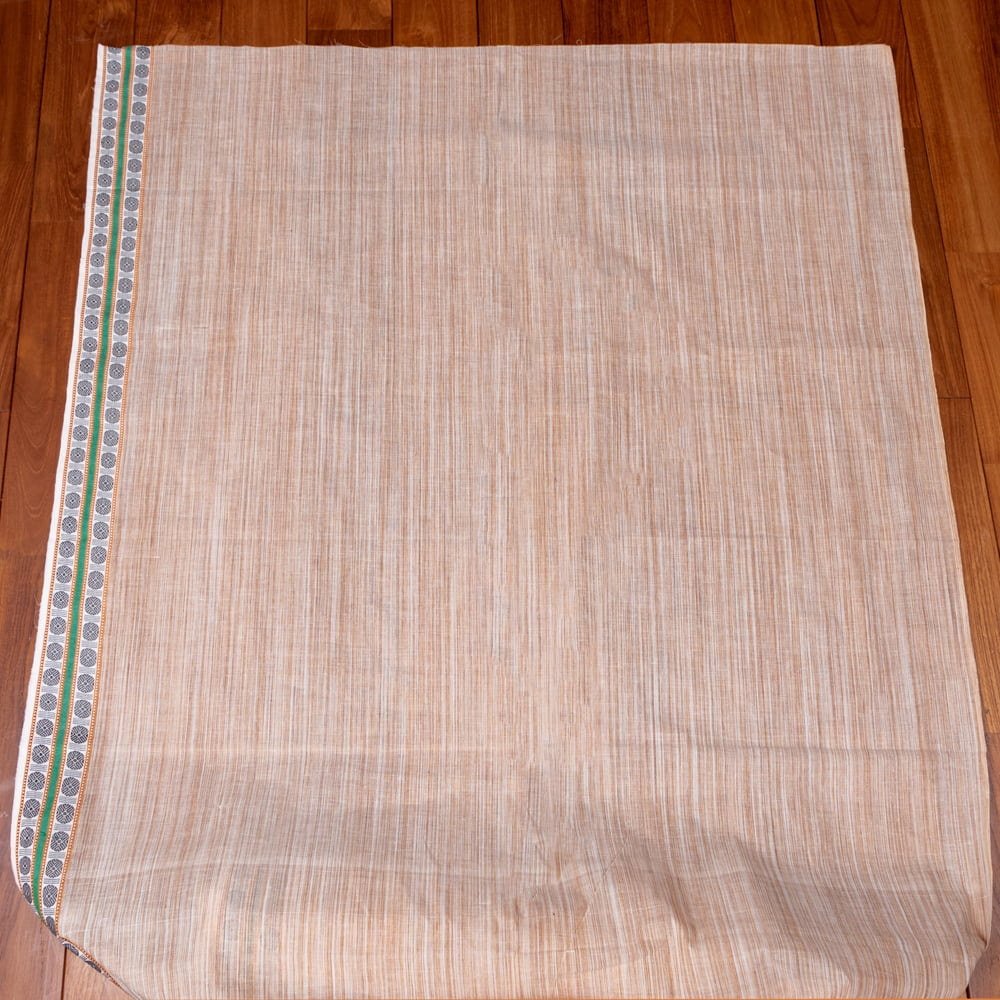 〔1m単位切り売り〕南インドのハーフボーダーコットンクロス〔幅約110cm〕 - ベージュ系