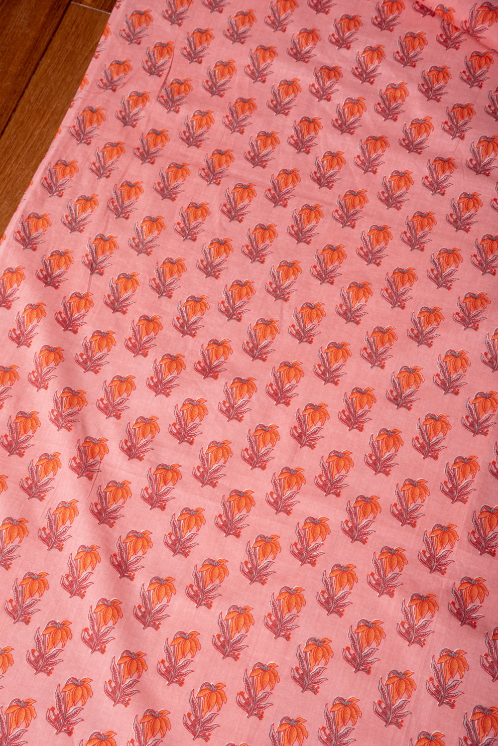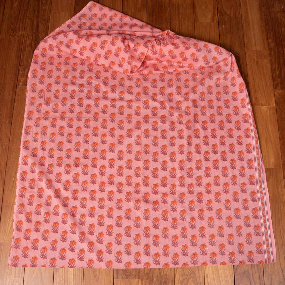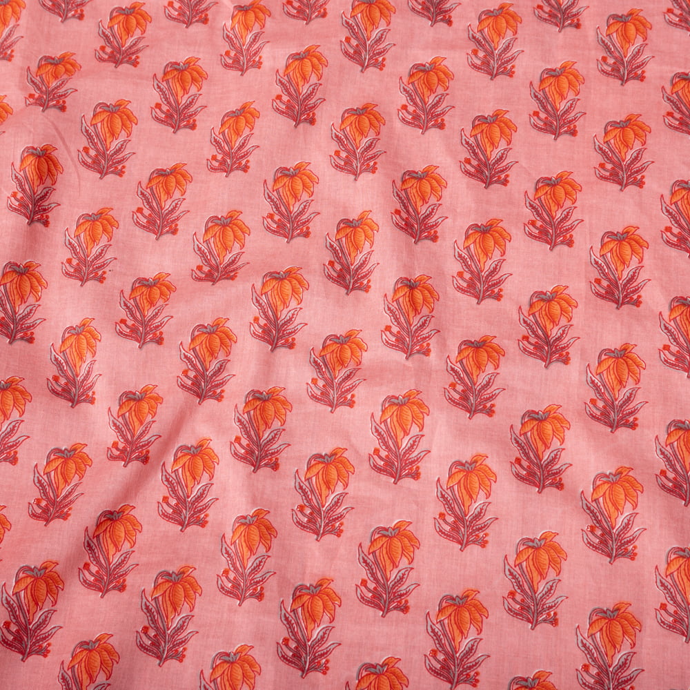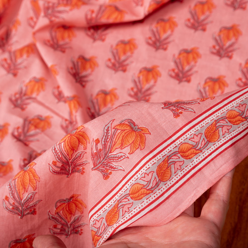 〔1m単位切り売り〕南インドの小花柄布〔約106cm〕 - コーラルピンク 通販店