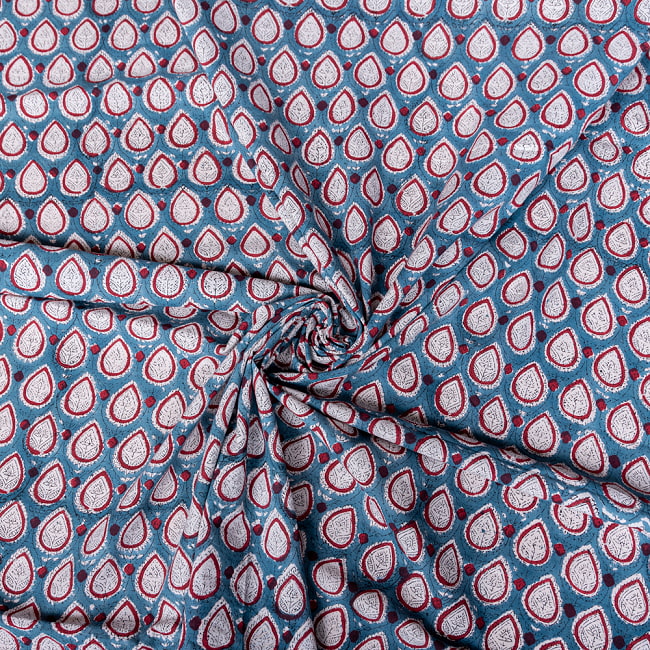 〔1m単位切り売り〕ジャイプル 職人手作り木版染め 色彩美しいボタニカルデザイン おしゃれ 生地 花柄 テーブルクロス 刺繍素材などへ〔幅約109cm〕 - 青緑系の評価 (合計:3件)