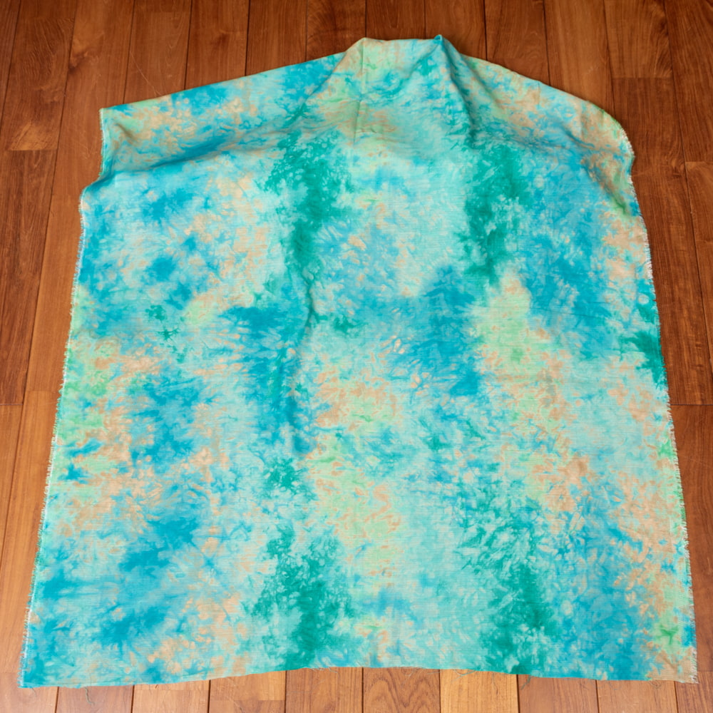 鮮やかで明るい雰囲気のタイダイ風に染められた生地のカラーリングがマッチングした素敵な布です。色合いが美しく、手芸用の布としてはもちろんインテリア用のカバーや飾り布として様々な場所でお使いいただけます。ソファカバーやカーテン、等々色々な使いみちが考えられますね。