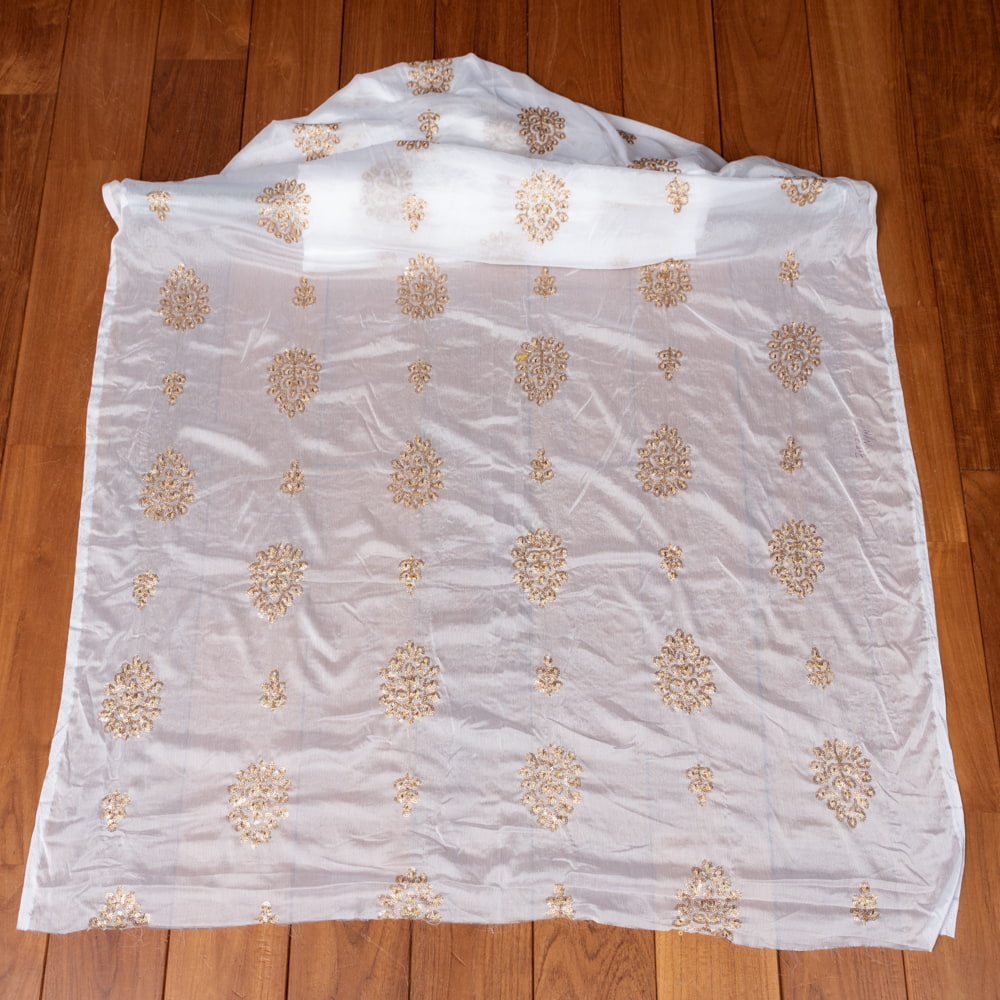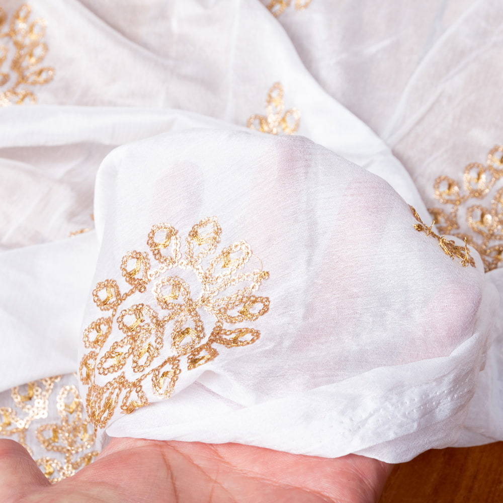 〔1m単位切り売り〕インドのスパンコール刺繍付き シフォン生地布〔約94cm〕ホワイト系