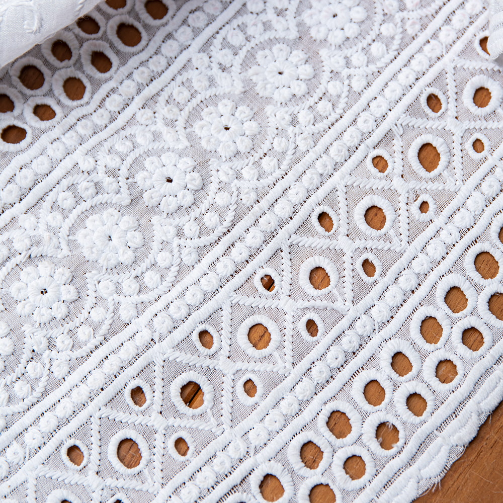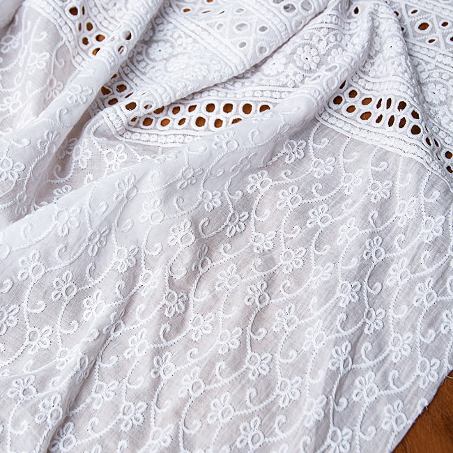 〔1m単位切り売り〕更紗やインドの伝統刺繍 アイレットレースのホワイトコットン布 〔幅約120cm〕 通販店