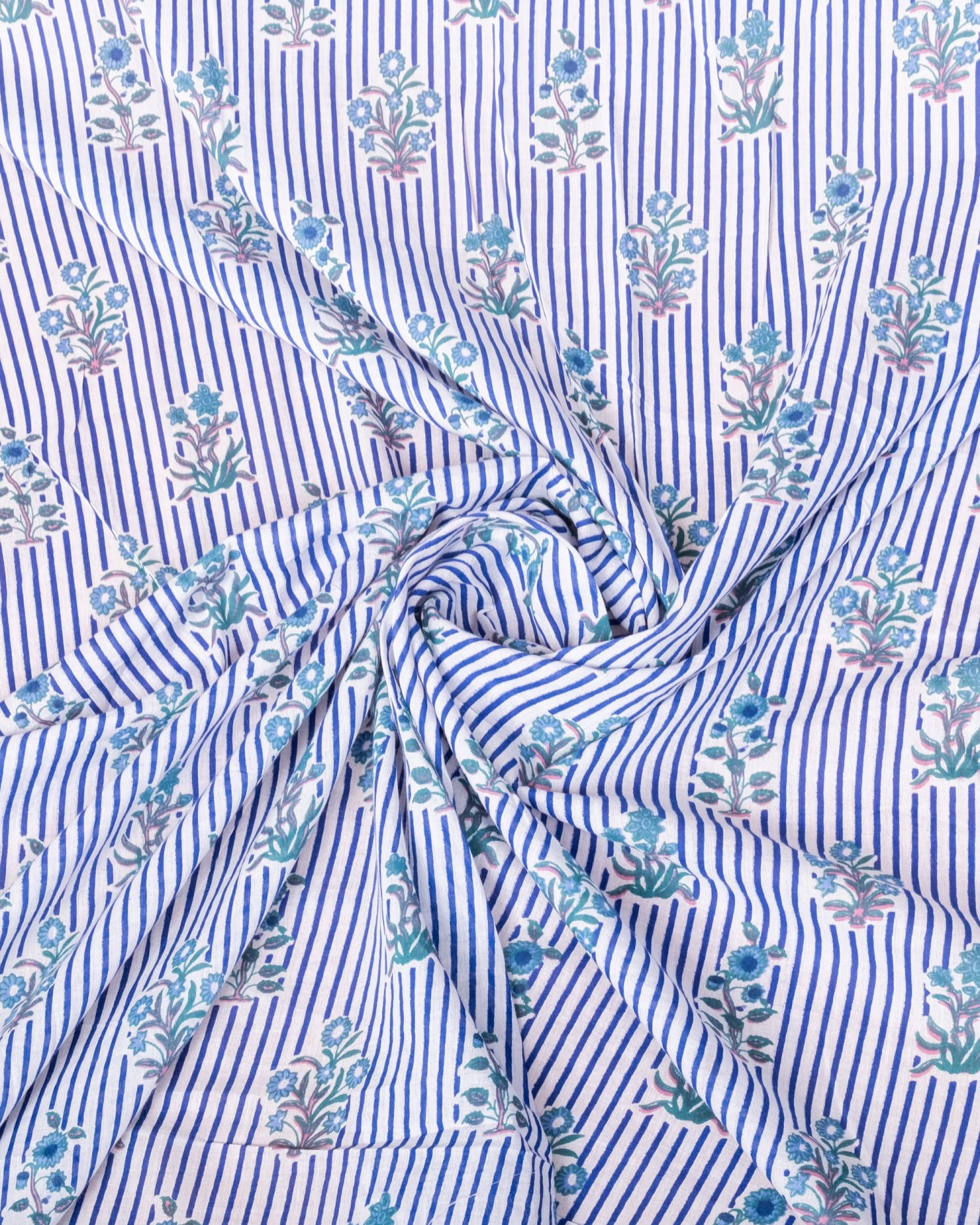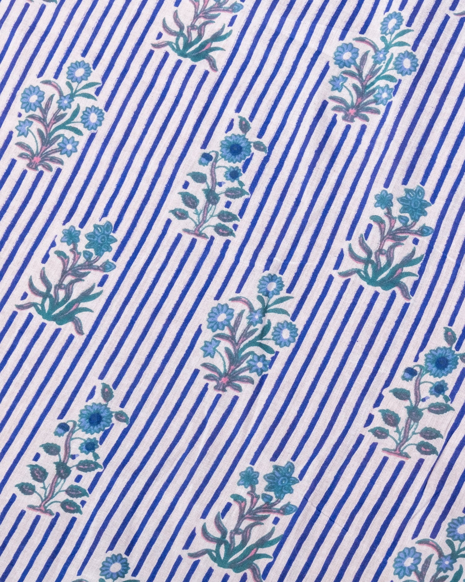 〔1m単位切り売り〕ジャイプル 職人手作り木版染め 色彩美しいボタニカルデザイン〔幅約113cm〕〔ブルー系 更紗柄〕 おしゃれ 生地 テーブルクロス 手芸素材などへ 通販店