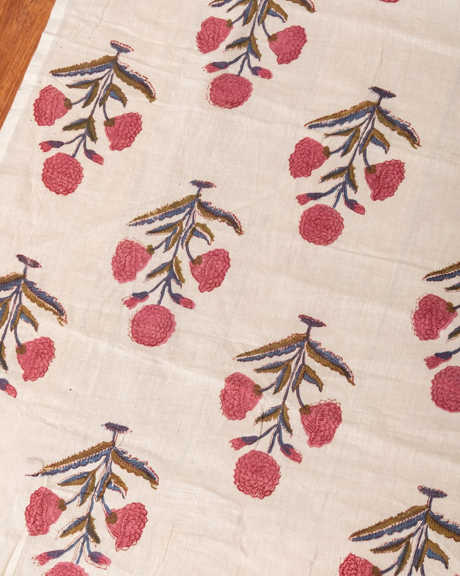 〔1m単位切り売り〕ジャイプル 職人手作り木版染め 色彩美しいボタニカルデザイン〔幅約111cm〕〔薄グリーン系 花柄〕 おしゃれ 生地 テーブルクロス 手芸素材などへ 通販店