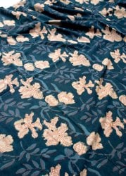 〔90cm切り売り〕インディゴブルーの伝統泥染め布 - 花柄〔幅約111cm〕