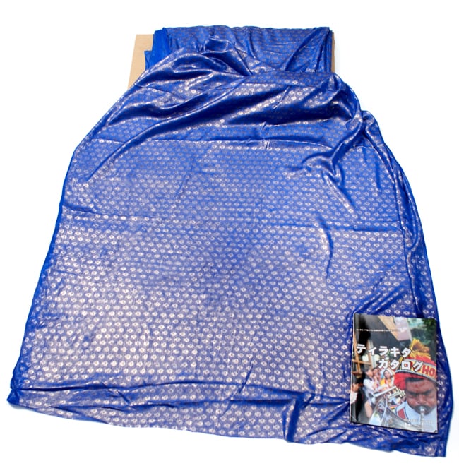 布を広げてみたところです。横幅もしっかり大きなサイズ。右下にあるのはサイズ比較用の当店A4サイズカタログです。