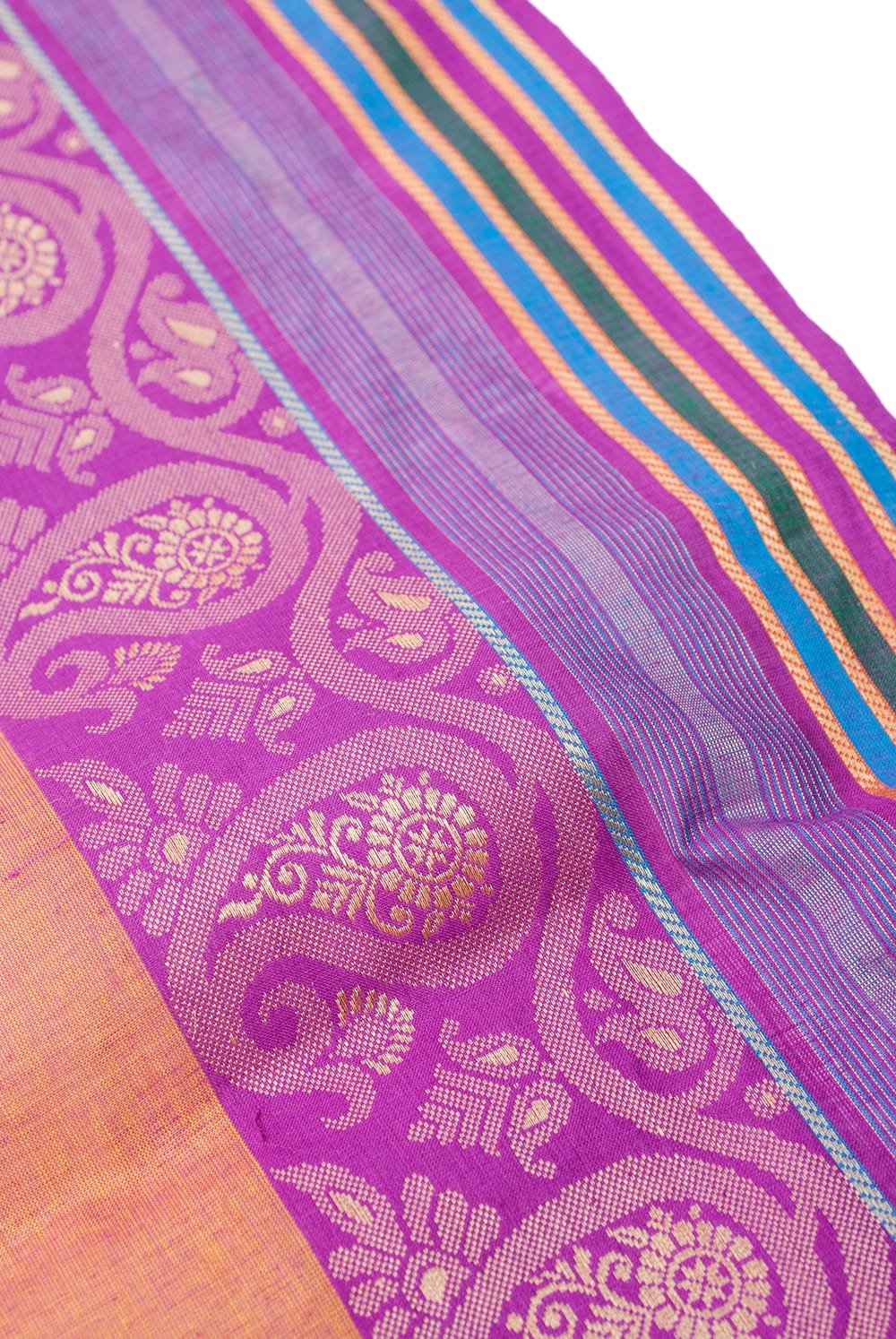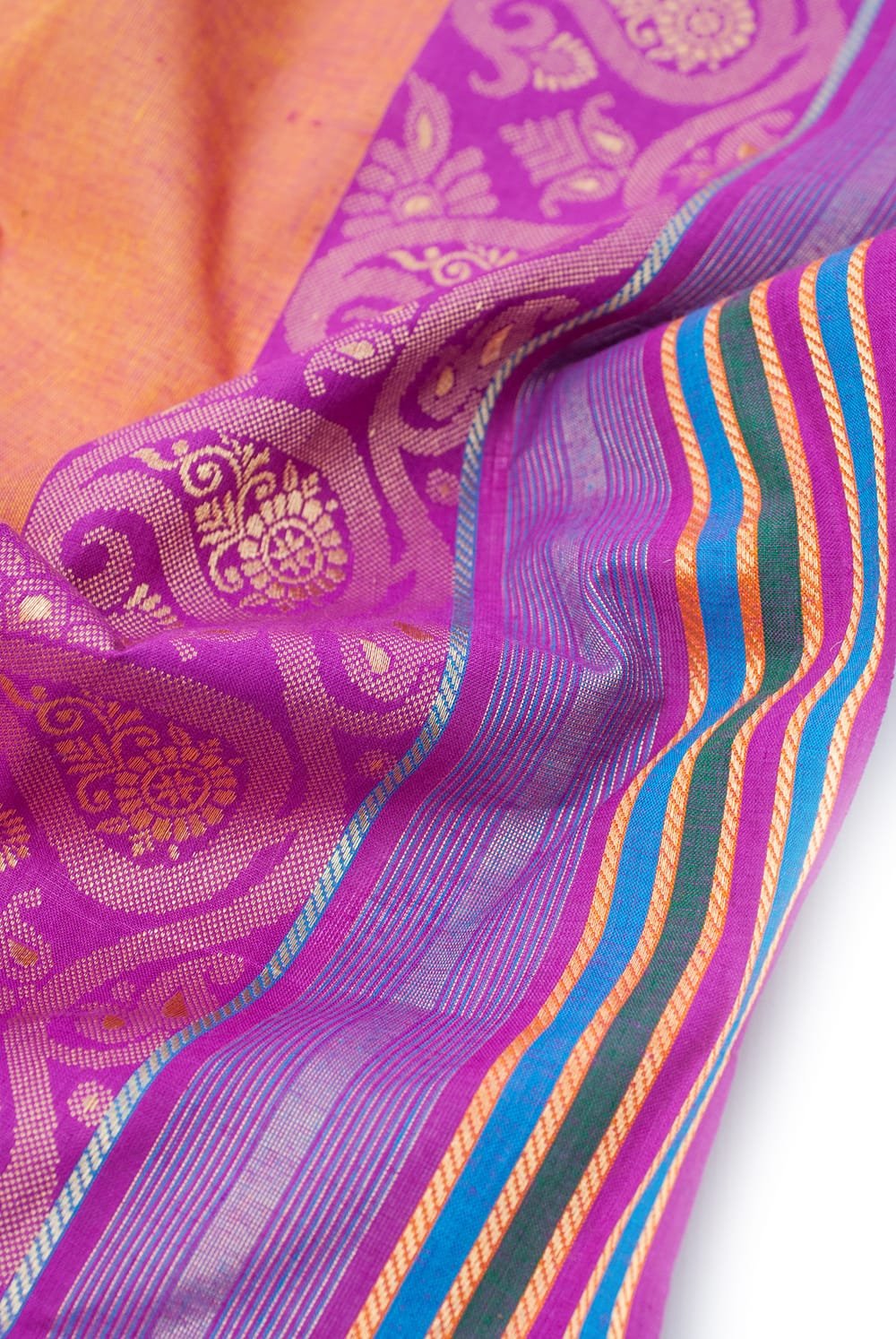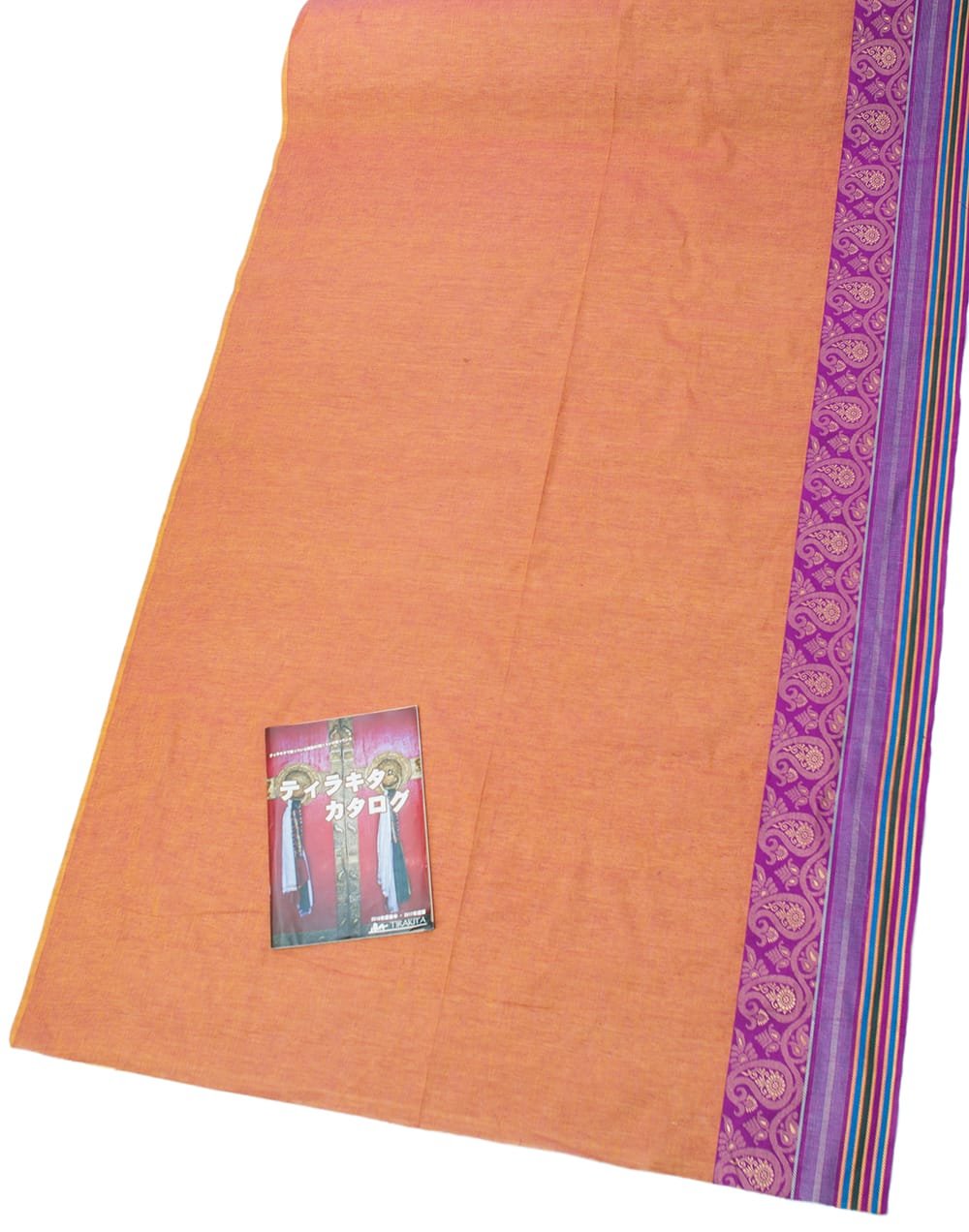 〔1m単位切り売り〕南インドのハーフボーダー・シンプル・コットン生地 - オレンジ×紫ペイズリー〔幅約110cm〕 通販店