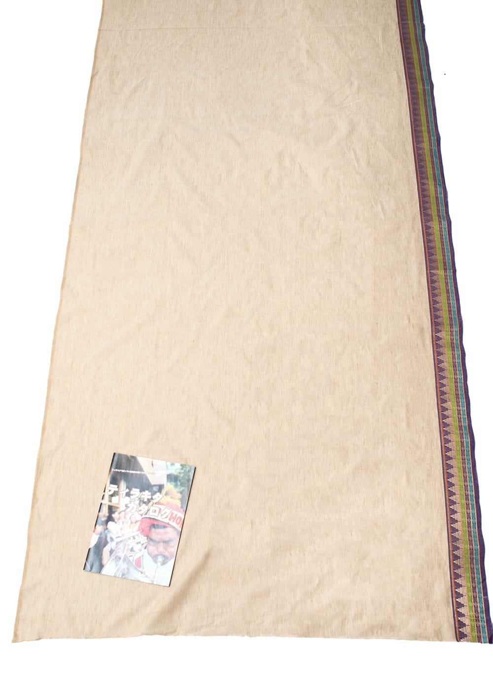 片側の端にボーダー模様の入ったエスニック布が南インドから届きました!幅が全体で110cm程度あり、飾りがついているので、ワンピースやスカート、シャツなどをハンドメイドするのにぴったりの作りになっています。■広大なインド布の世界