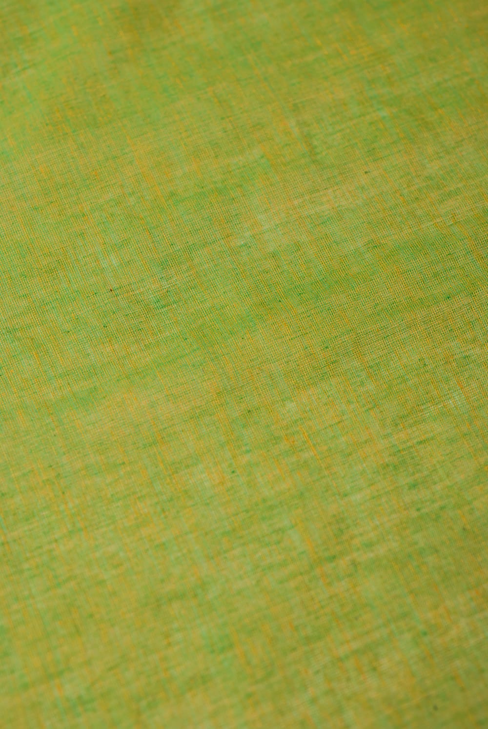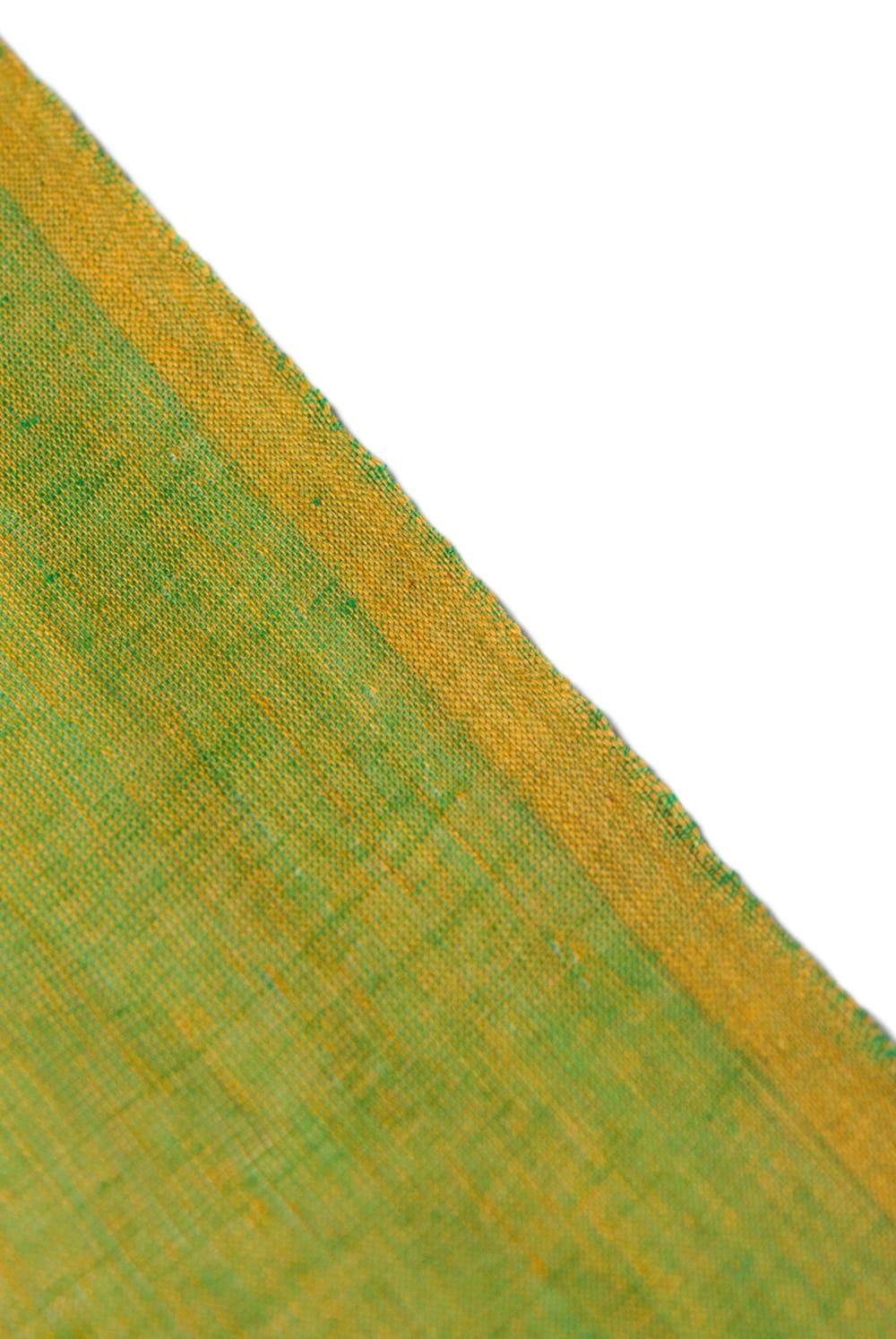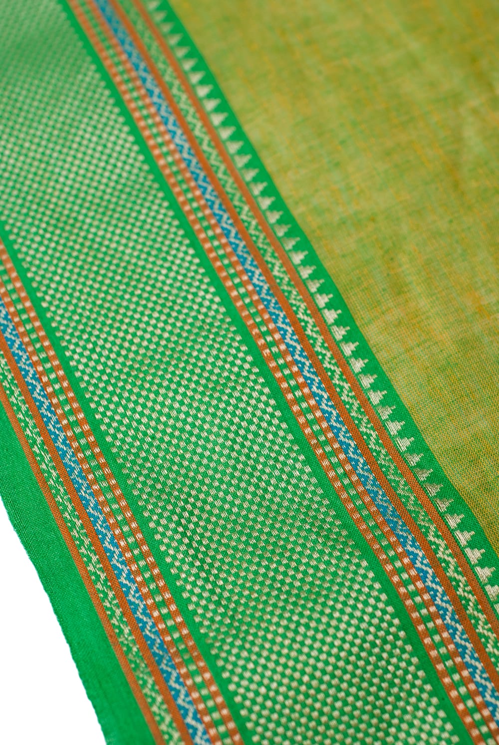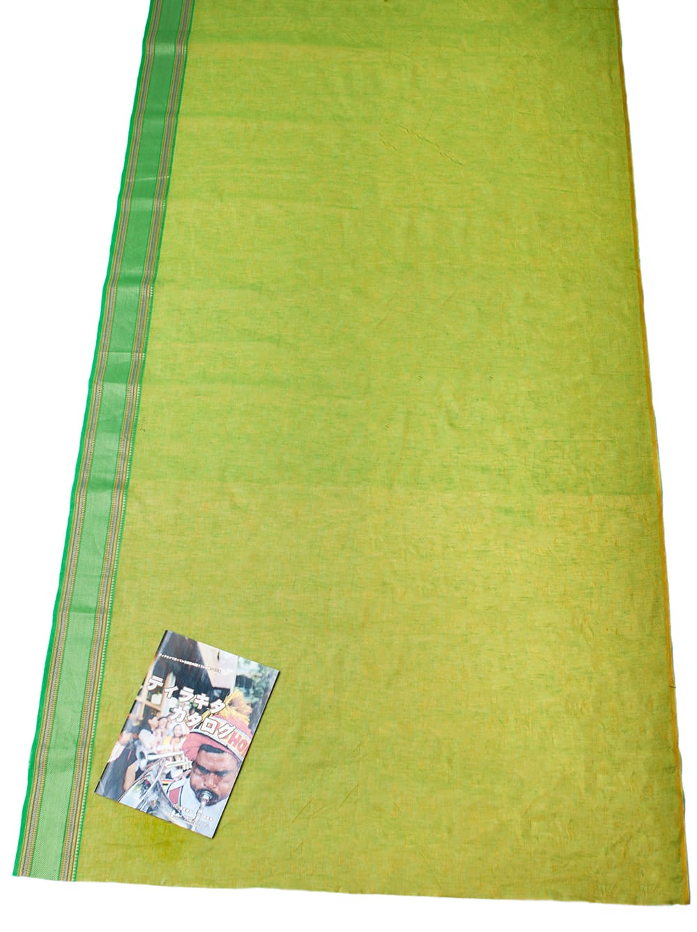 〔1m単位切り売り〕南インドのハーフボーダー・シンプル・コットン生地 - 黄緑×グリーン〔幅約108cm〕