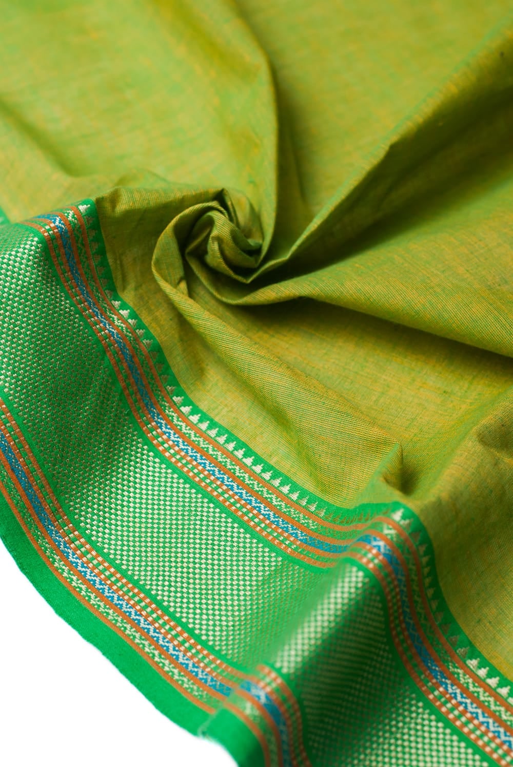 〔1m単位切り売り〕南インドのハーフボーダー・シンプル・コットン生地 - 黄緑×グリーン〔幅約108cm〕 通販店