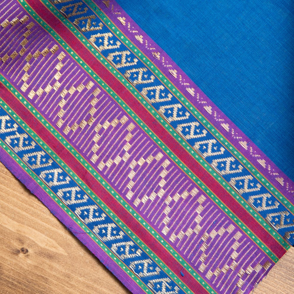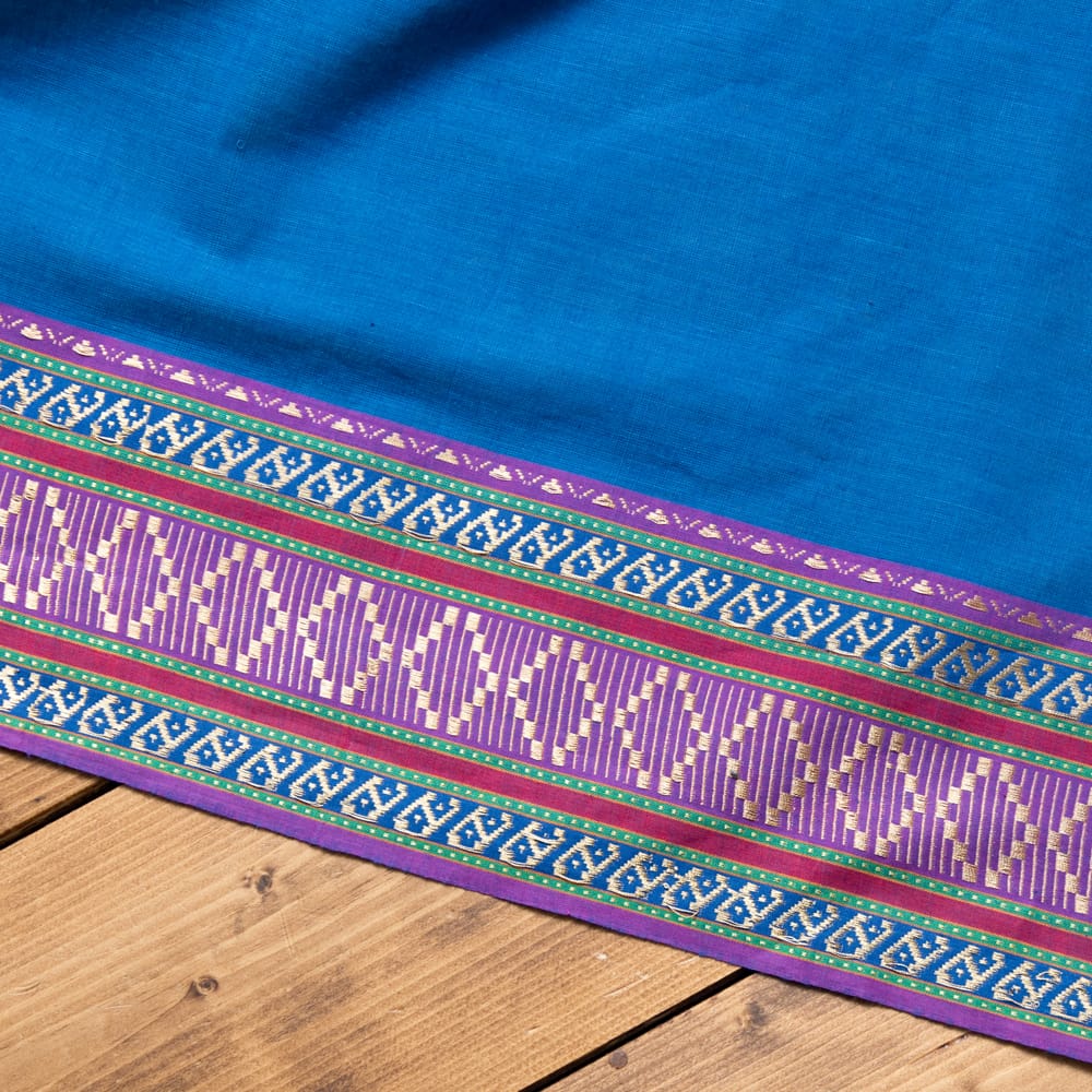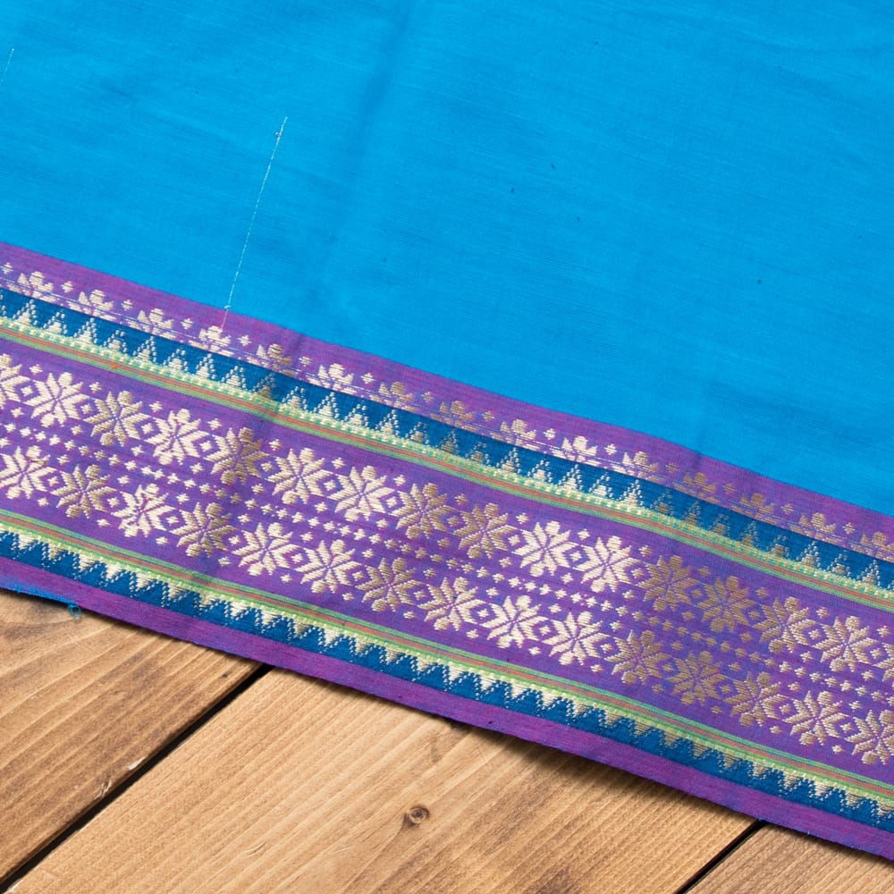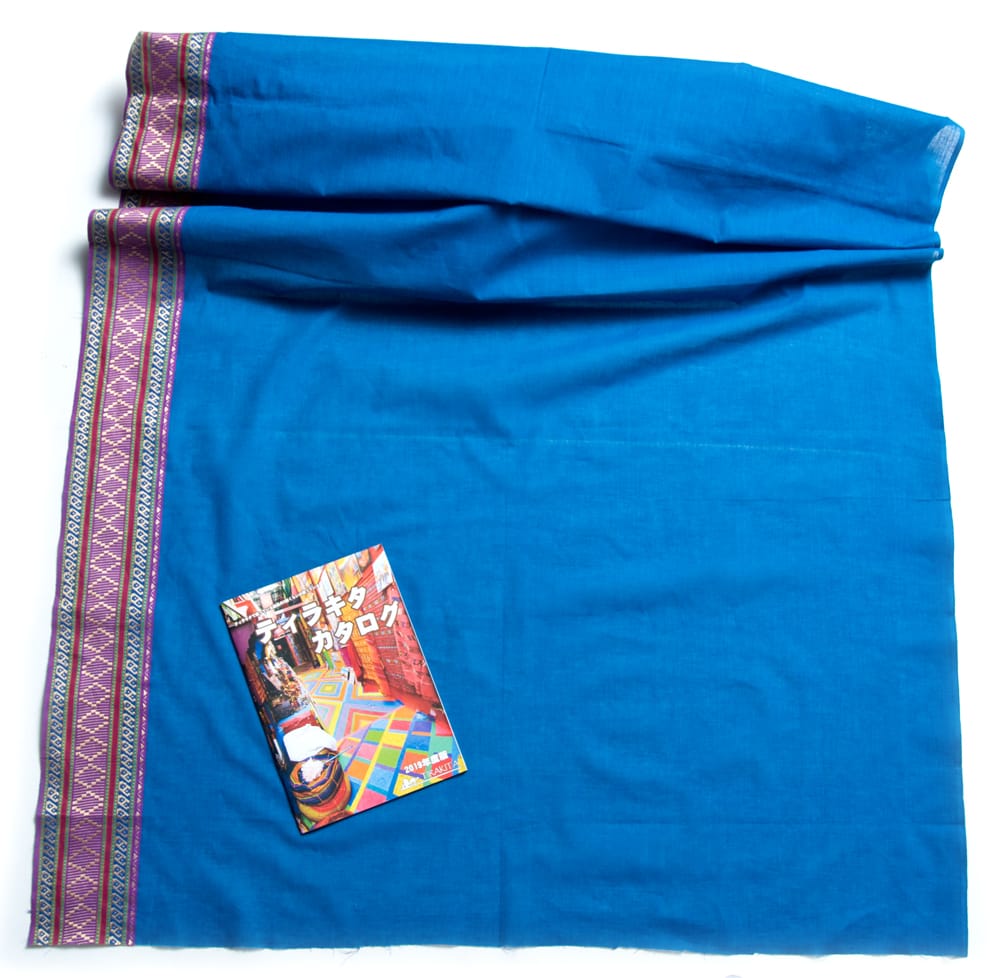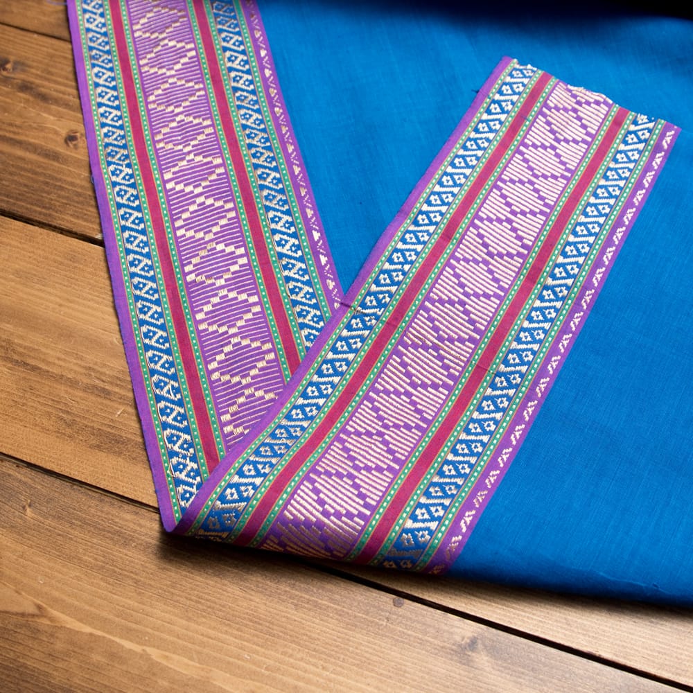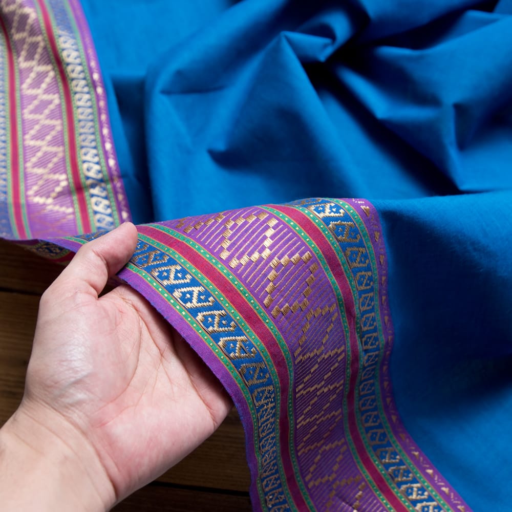片側の端にボーダー模様の入ったエスニック布が南インドから届きました!幅が全体で110cm程度あり、飾りがついているので、ワンピースやスカート、シャツなどをハンドメイドするのにぴったりの作りになっています。■広大なインド布の世界