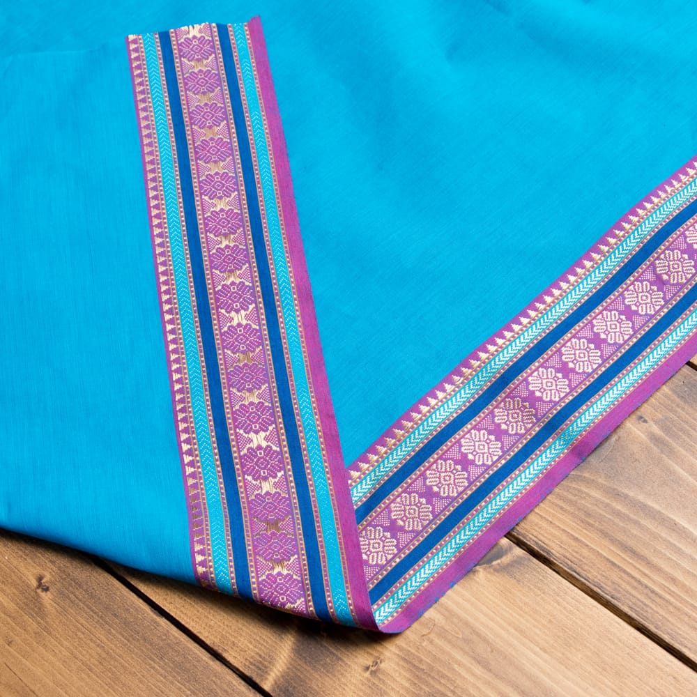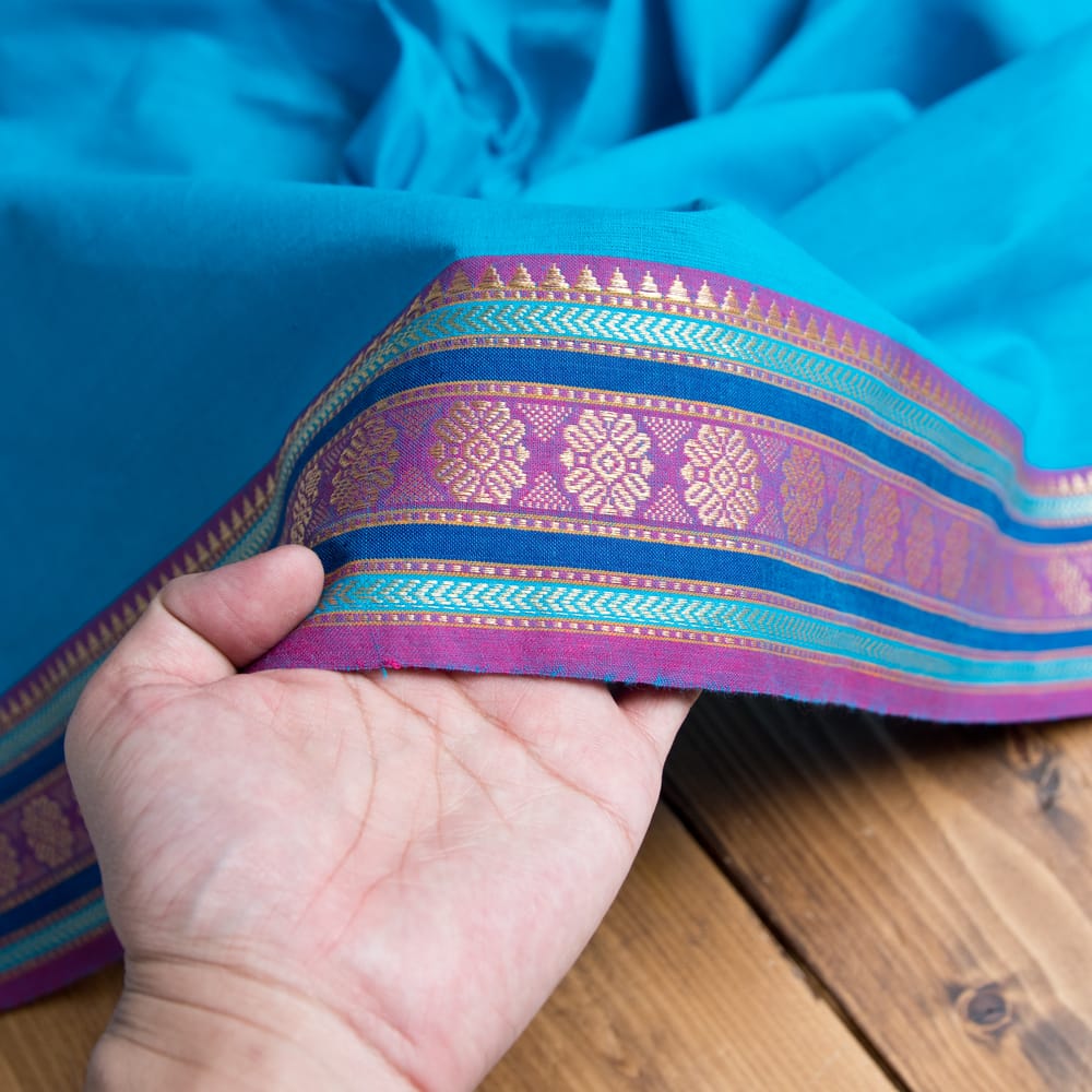 端にボーダー模様の入ったエスニック布が南インドから届きました!幅が全体で110cm程度あり、飾りがついているので、ワンピースやスカート、シャツなどをハンドメイドするのにぴったりの作りになっています。■広大なインド布の世界
