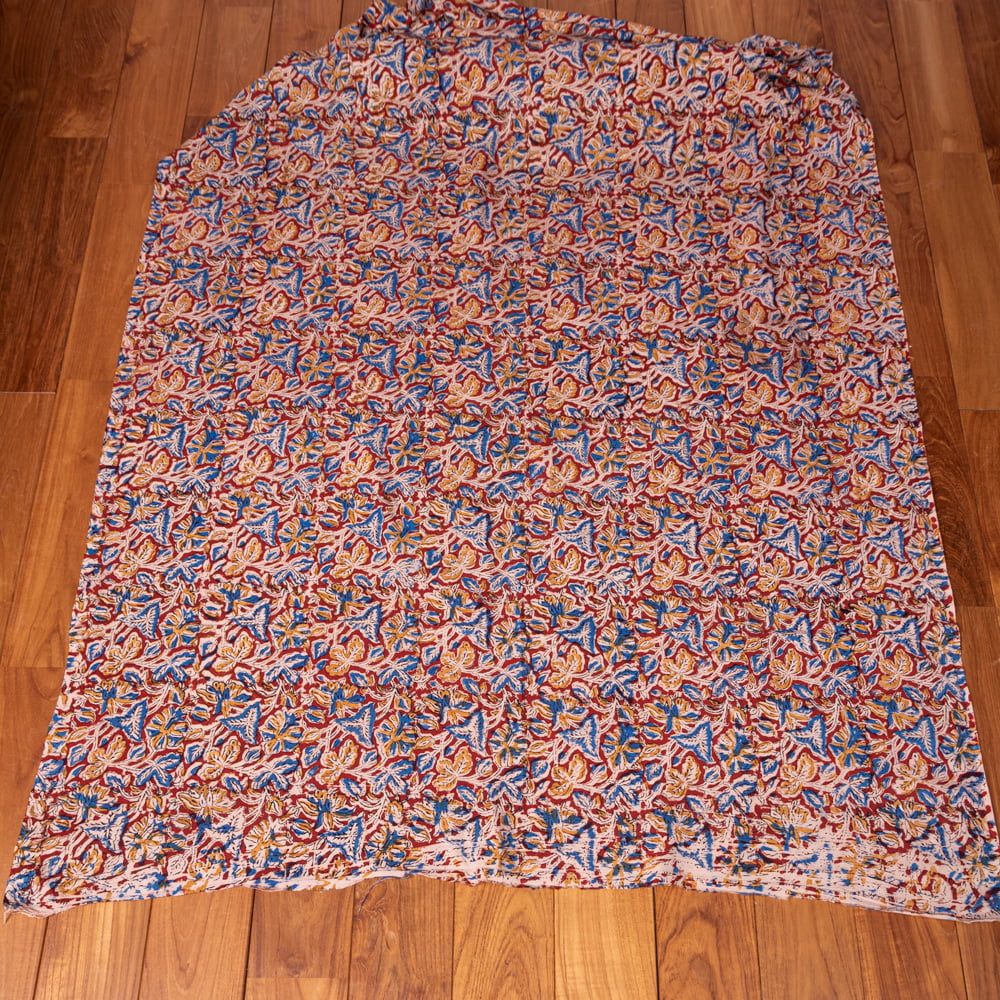 〔1m単位切り売り〕伝統息づく南インドから 昔ながらの木版染め更紗模様布 - 赤系〔横幅:約120cm〕 通販店