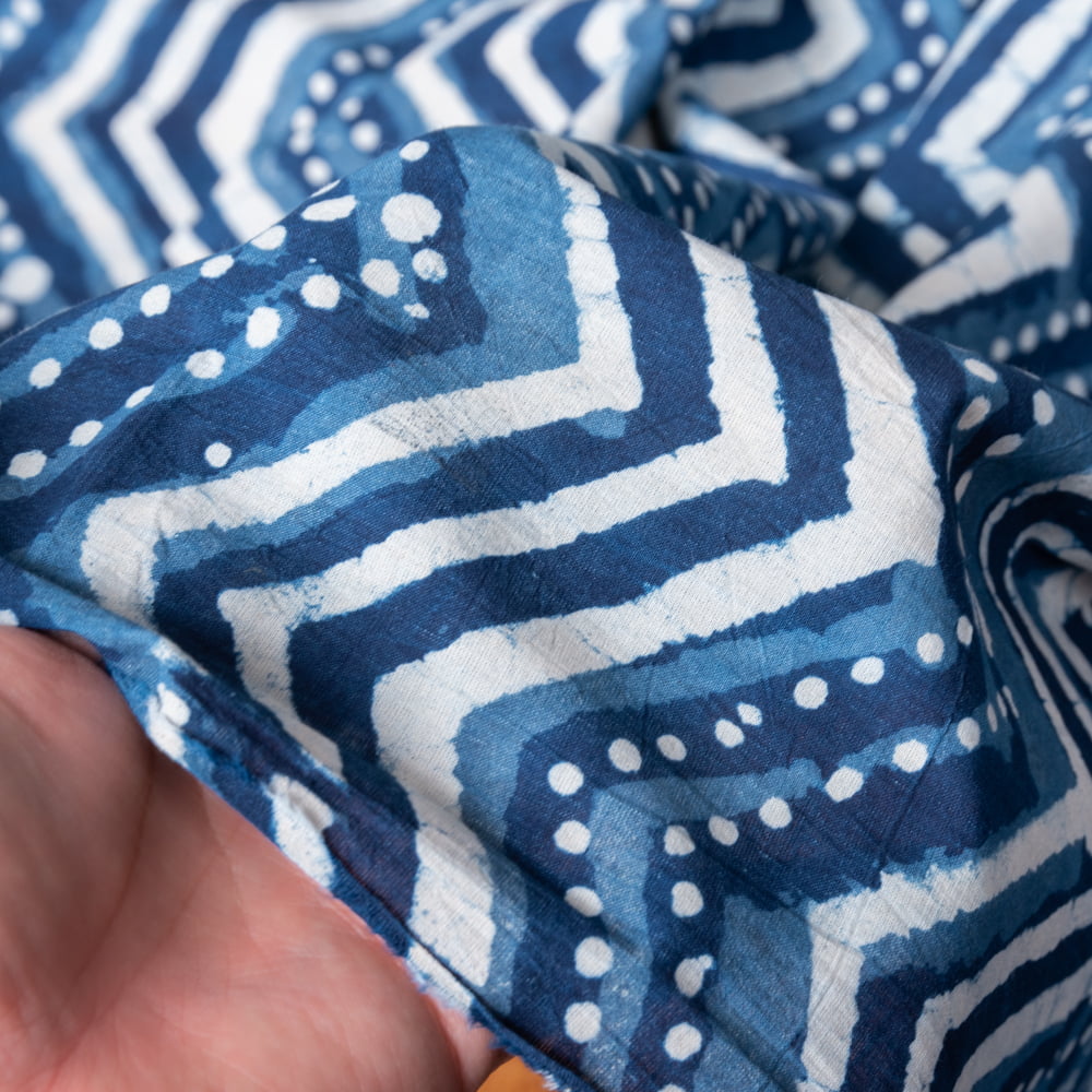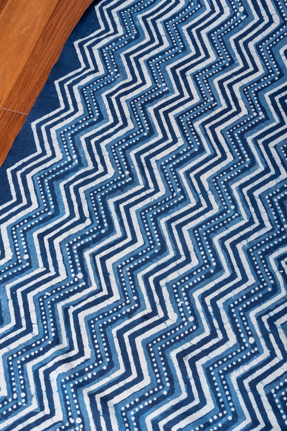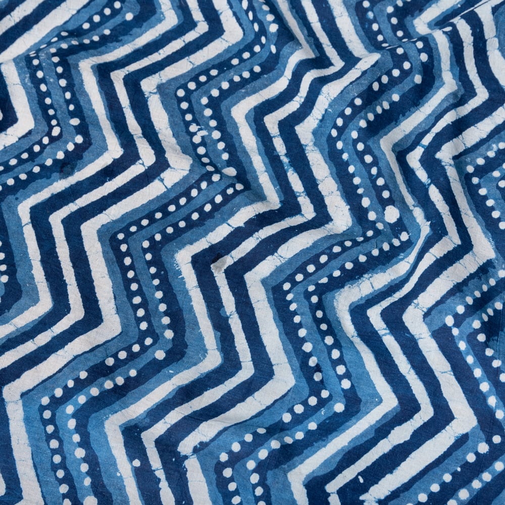 〔1m単位切り売り〕伝統息づく南インドから 昔ながらの木版インディゴ藍染布 - ジグザグ模様〔横幅:約112.5cm〕 通販店