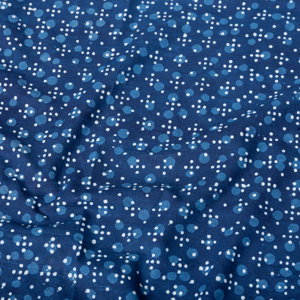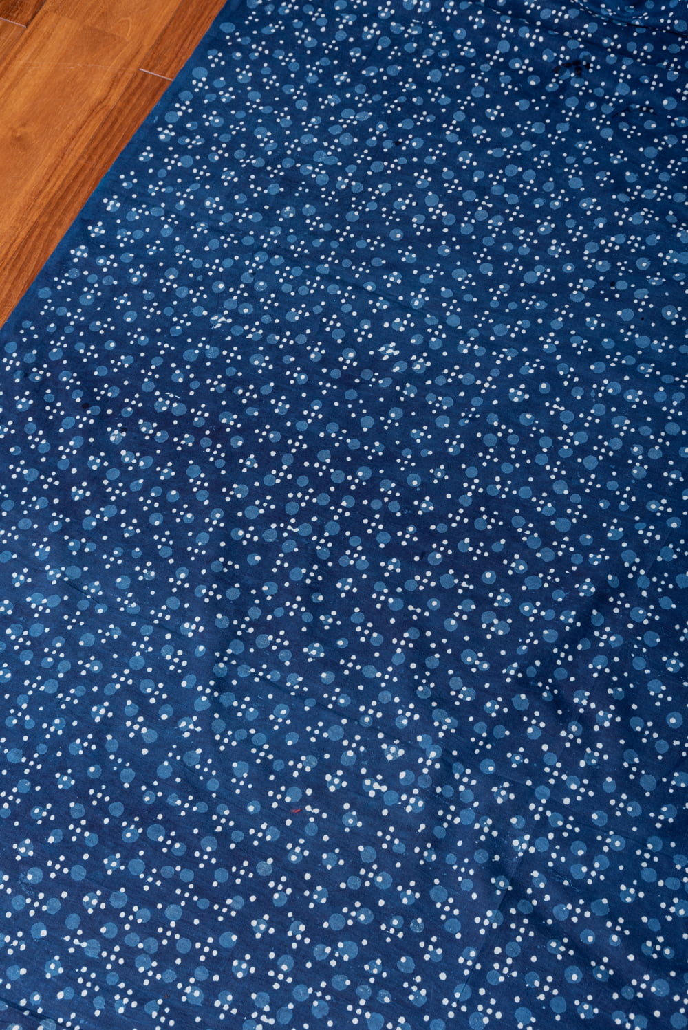 〔1m単位切り売り〕伝統息づく南インドから 昔ながらの木版インディゴ藍染布 - ドット模様〔横幅:約113cm〕