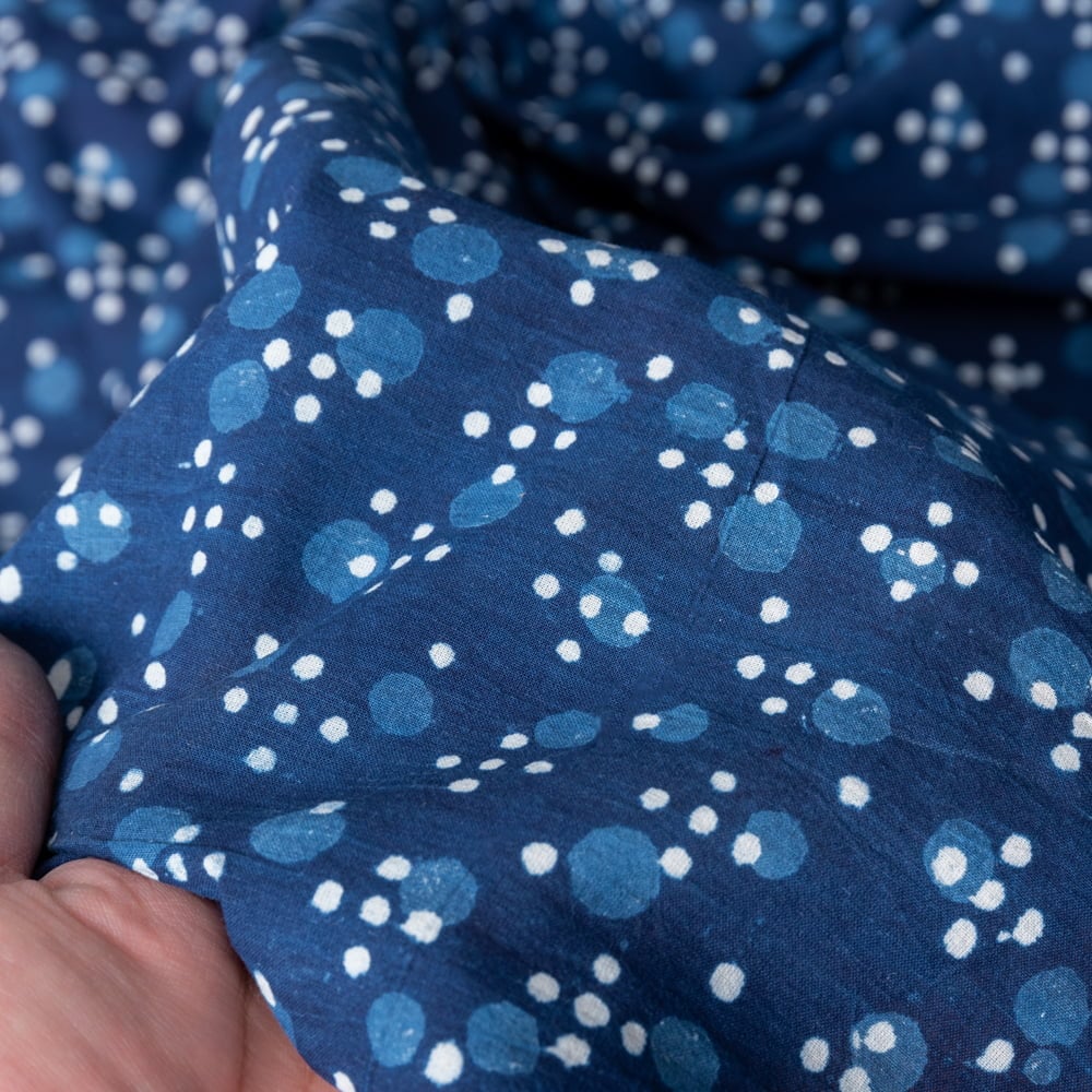 〔1m単位切り売り〕伝統息づく南インドから 昔ながらの木版インディゴ藍染布 - ドット模様〔横幅:約113cm〕 通販店