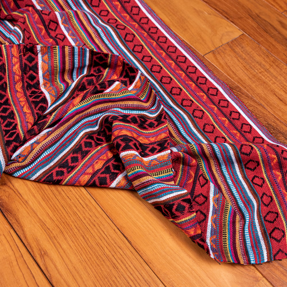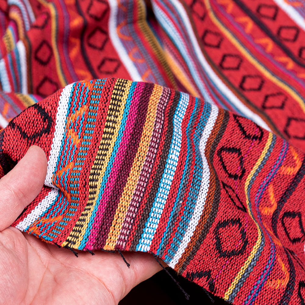 太めのコットン糸がざっくりと心地いい、ネパールのコットン布生地になります。丁寧にきっちりと編まれた、色鮮やかな布地が魅力の一品です。鮮やかな色合いが美しく、カバーや飾り布として様々な場所でお使いいただけるはずです。幅が大きく、手芸に幅広くお使い頂けます。