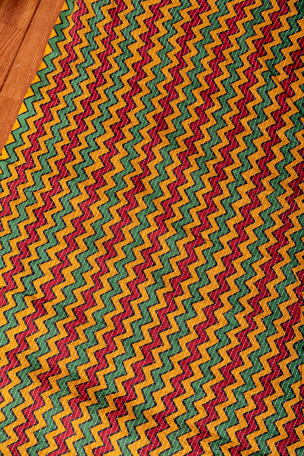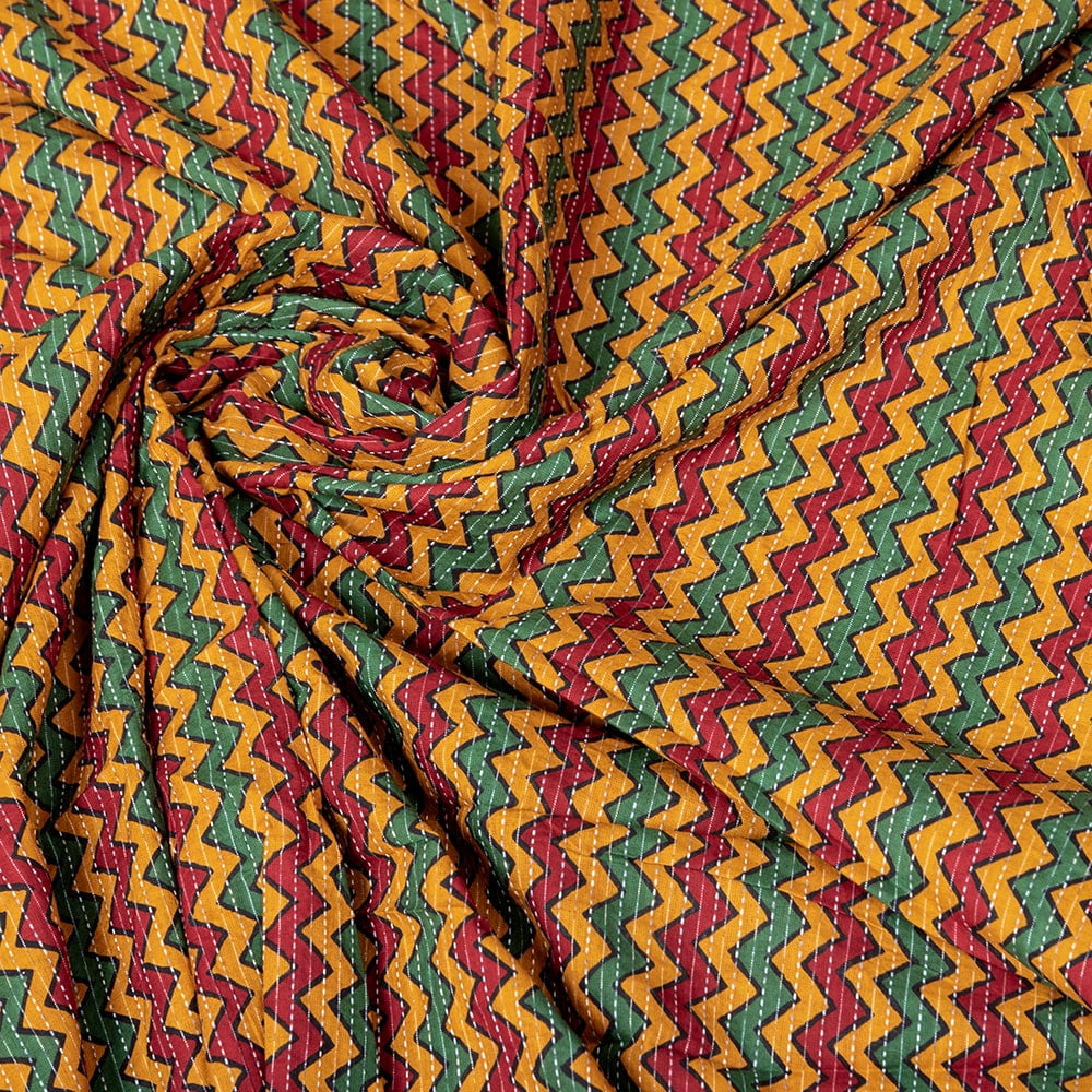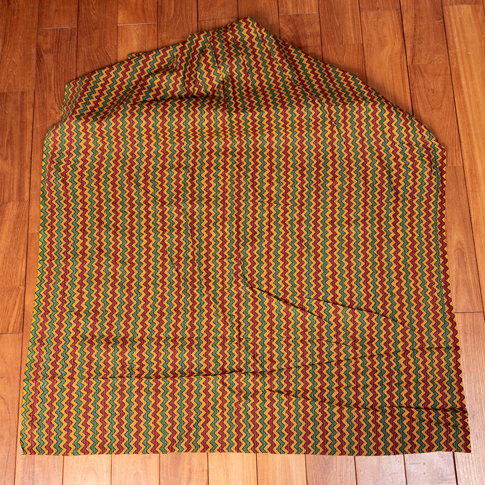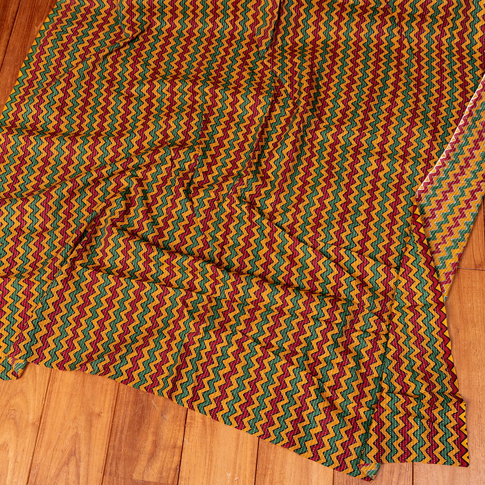 〔1m単位切り売り〕カンタ刺繍がかわいい ジグザグ模様 シェブロン・ストライプ布 ラスタ ラスタ系〔幅約112cm〕 x 3個