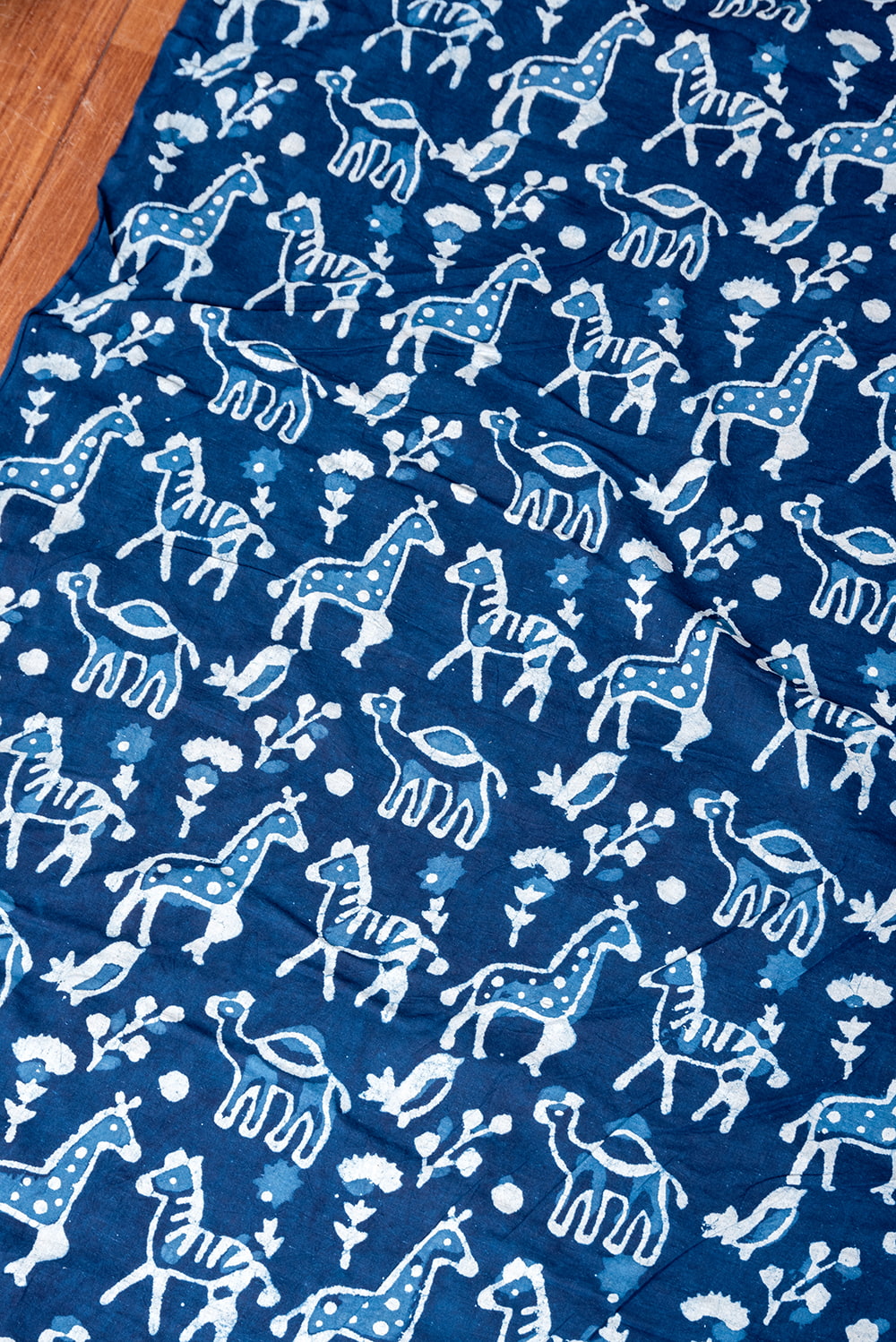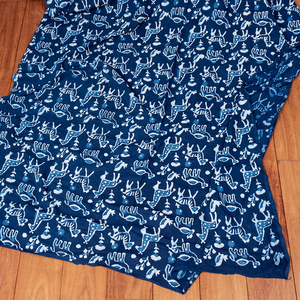 〔1m単位切り売り〕インドの伝統息づく 昔ながらの木版インディゴ藍染布 馬と駱駝 ネイビー系〔幅約114cm〕 x 3個
