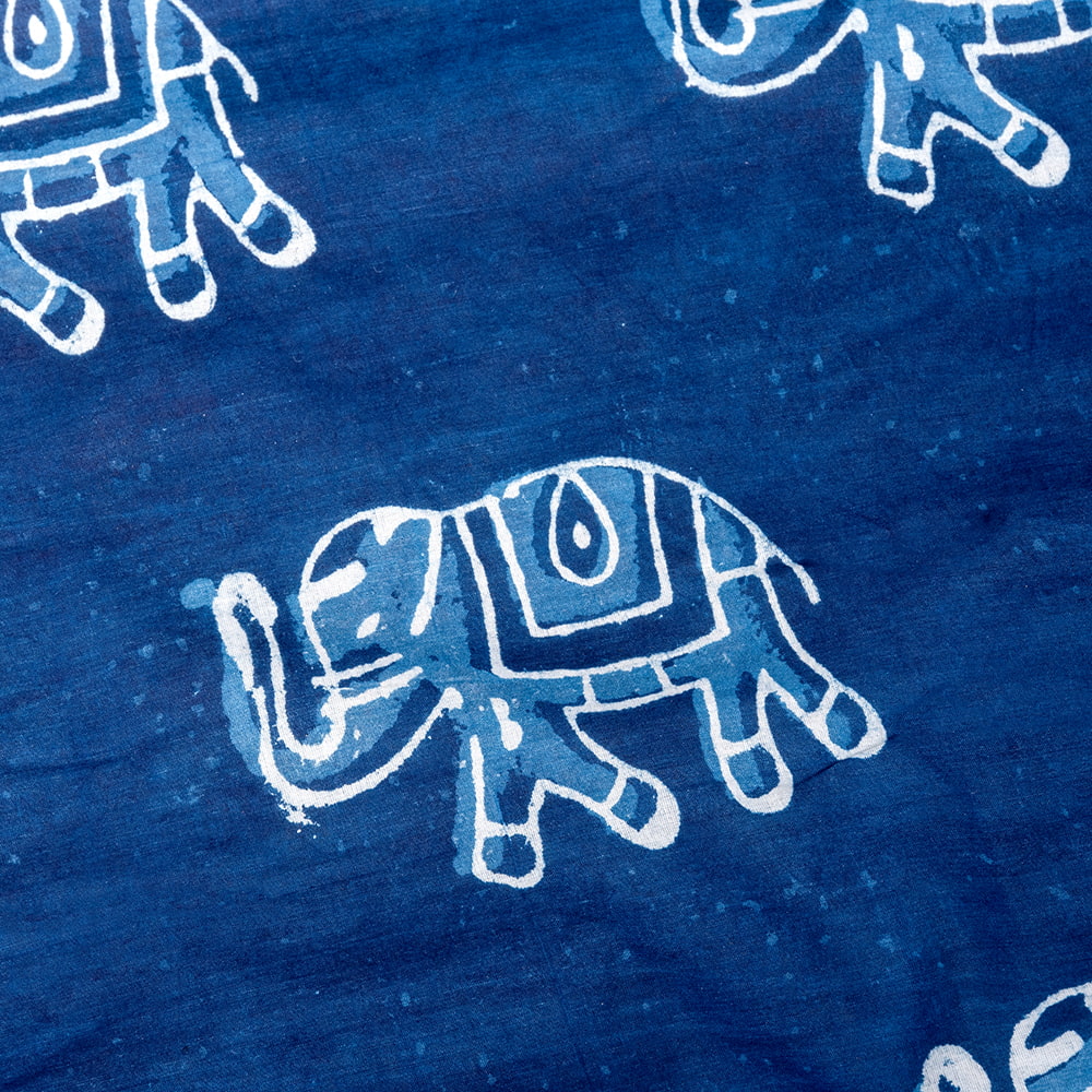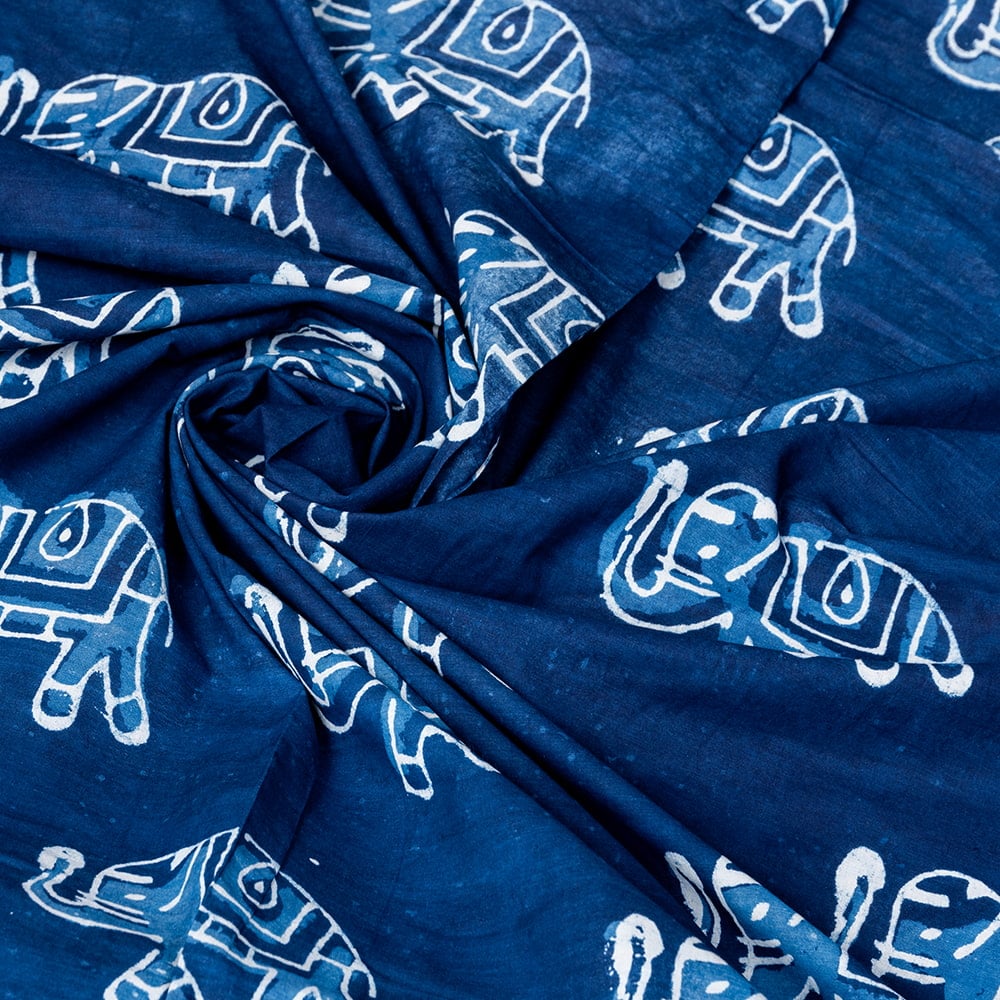 【3個セット】〔1m単位切り売り〕インドの伝統息づく 昔ながらの木版インディゴ藍染布 象さん ネイビー系〔幅約111cm〕