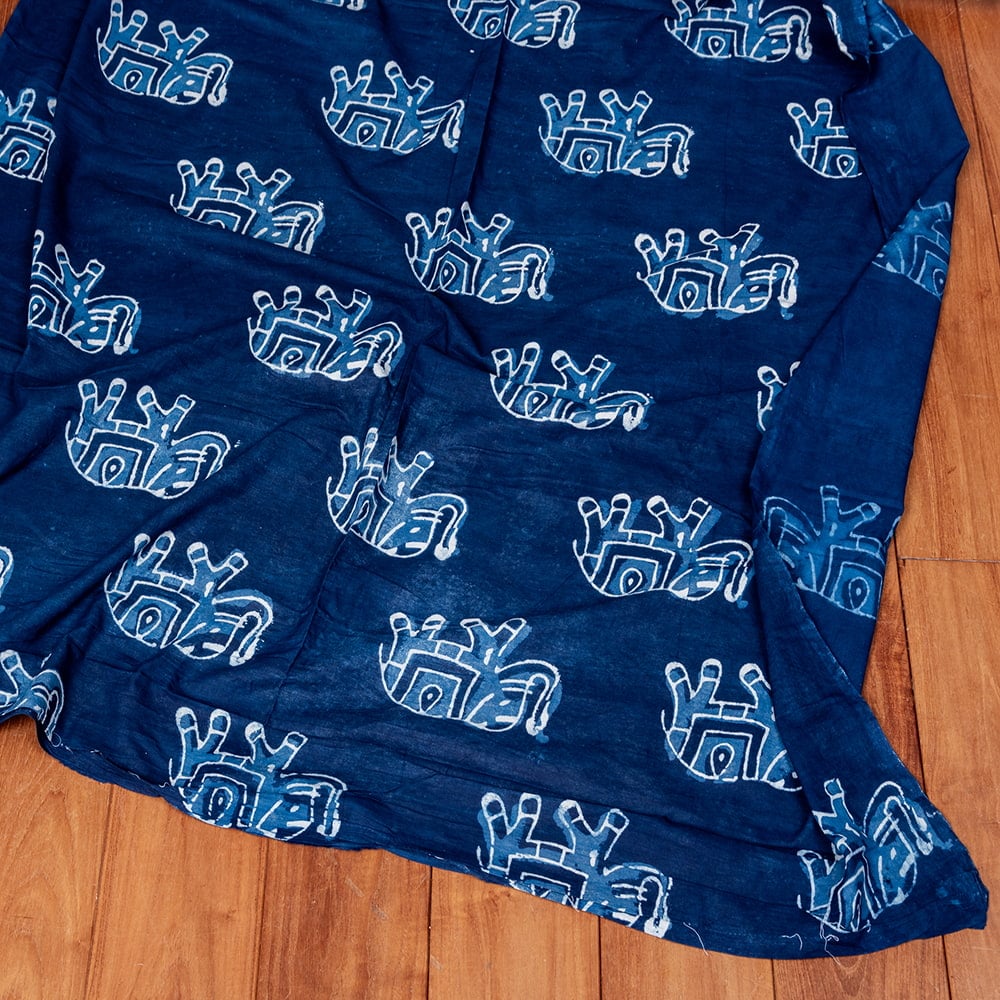 〔1m単位切り売り〕インドの伝統息づく 昔ながらの木版インディゴ藍染布 象さん ネイビー系〔幅約111cm〕 x 3個