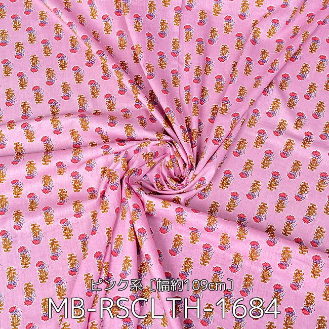 〔1m単位切り売り〕テキスタイルの伝統息づくインドから 昔ながらのボタニカル柄布 ピンク系〔幅約109cm〕 x 3個