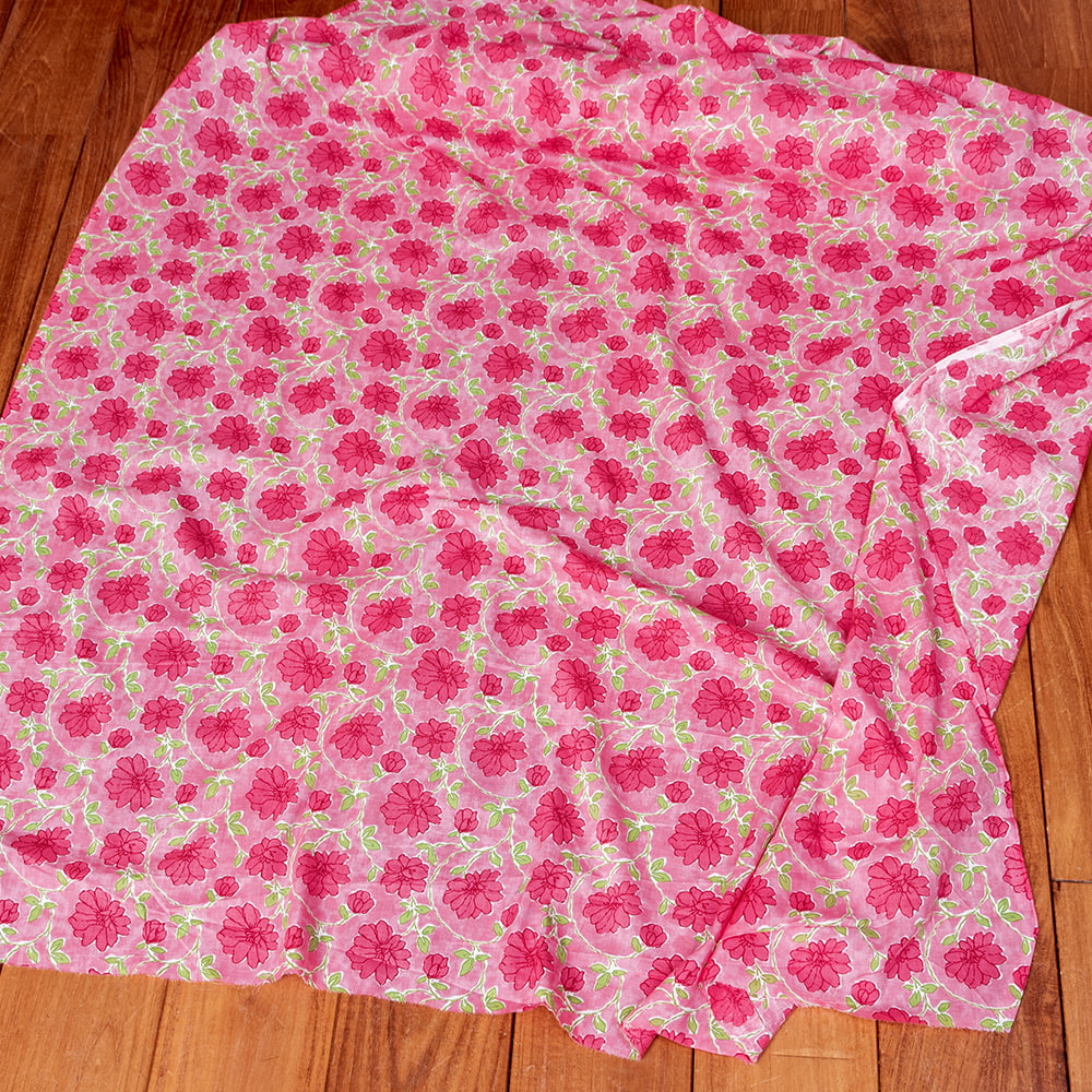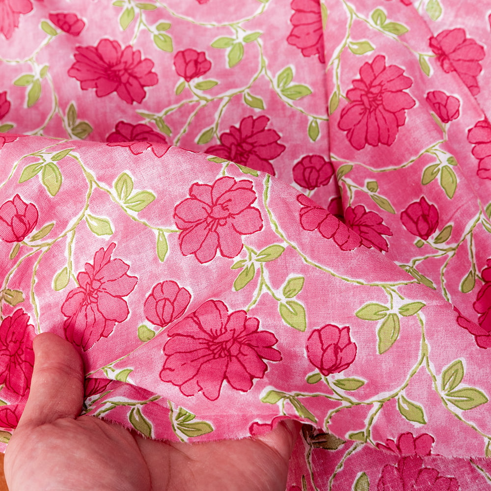 〔1m単位切り売り〕テキスタイルの伝統息づくインドから 昔ながらのボタニカル柄布 ピンク系〔幅約108cm〕 x 3個