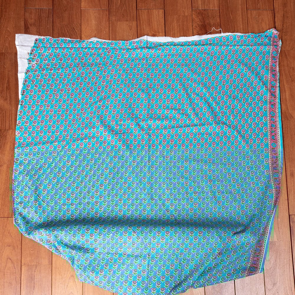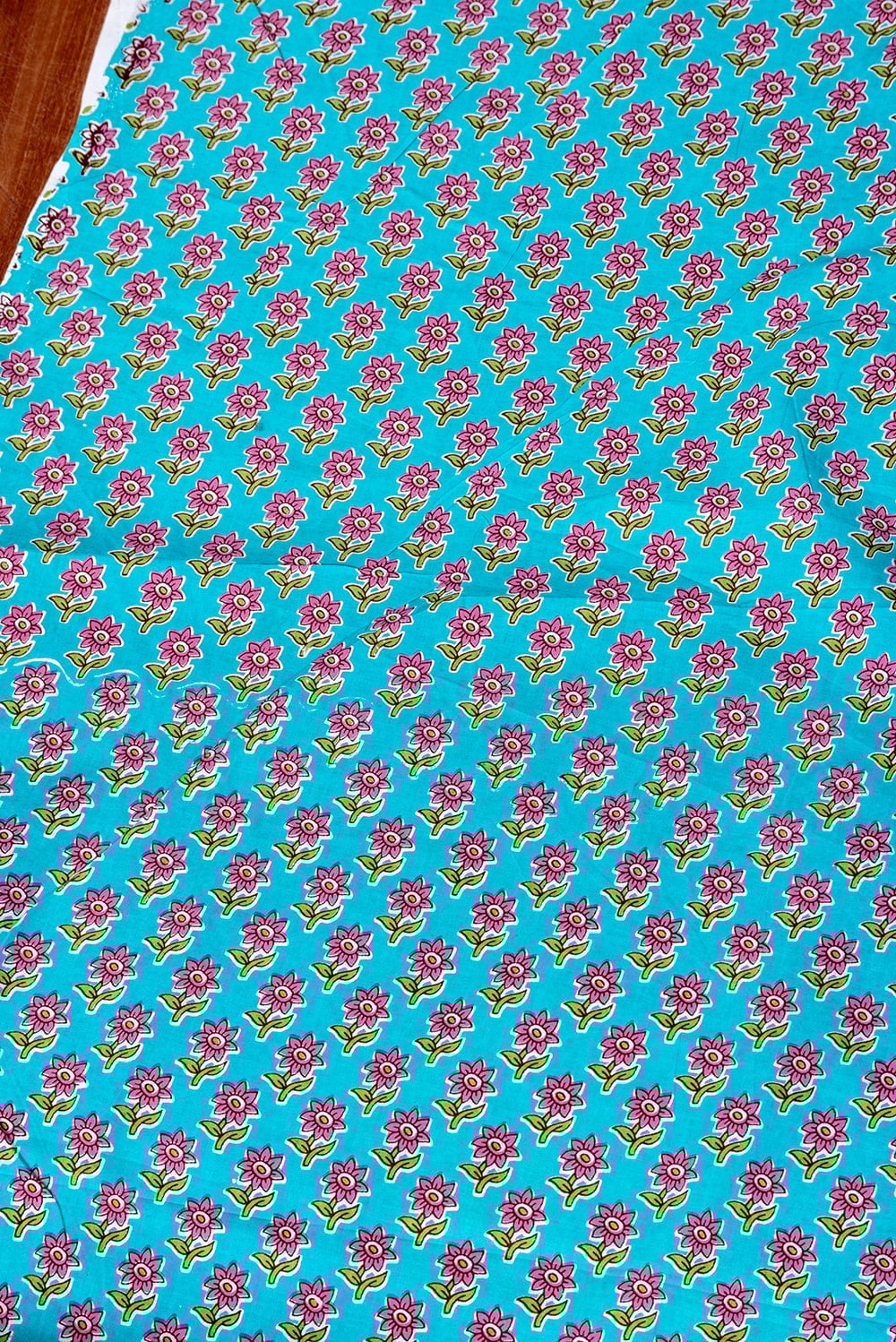 〔1m単位切り売り〕テキスタイルの伝統息づくインドから 昔ながらの小花柄布 青緑系〔幅約111cm〕 x 3個