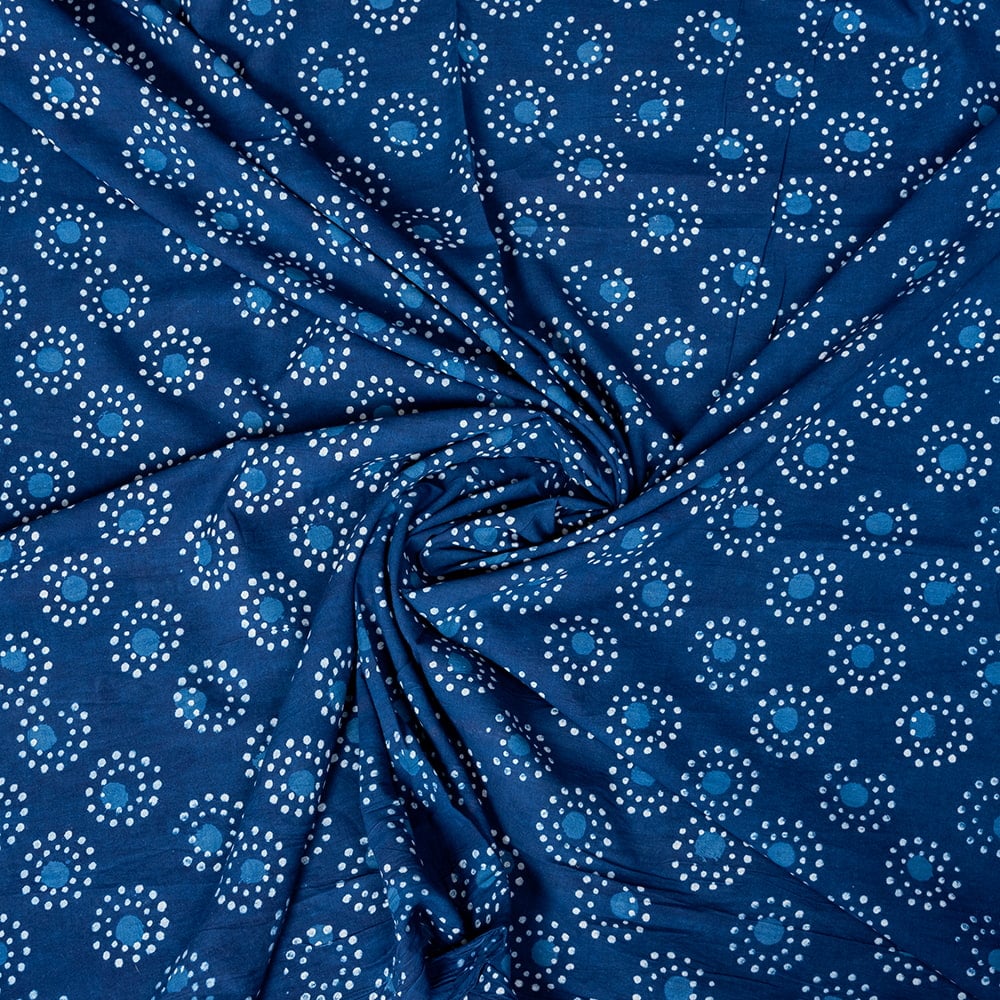【5個セット】〔1m単位切り売り〕インドの伝統息づく 昔ながらの木版インディゴ藍染布 花火 ネイビー系〔幅約109cm〕