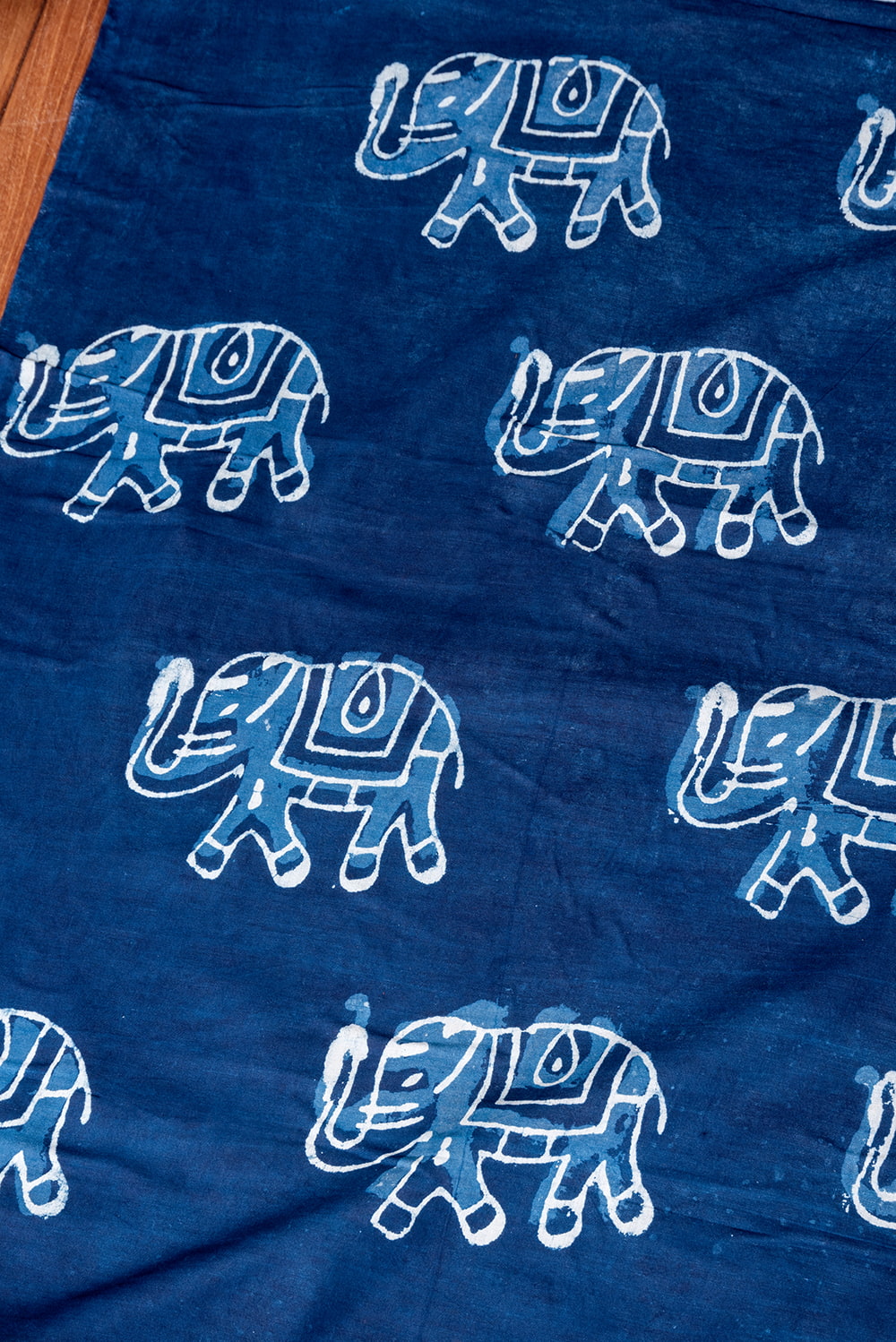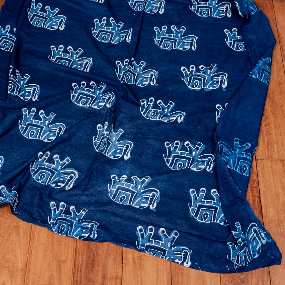 〔1m単位切り売り〕インドの伝統息づく 昔ながらの木版インディゴ藍染布 象さん ネイビー系〔幅約111cm〕 x 5個