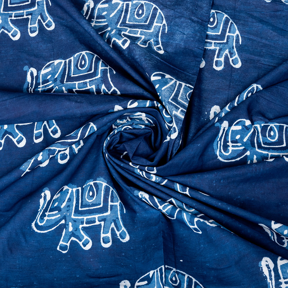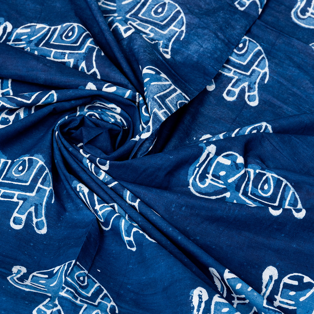 【5個セット】〔1m単位切り売り〕インドの伝統息づく 昔ながらの木版インディゴ藍染布 象さん ネイビー系〔幅約111cm〕