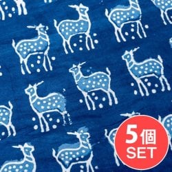 【5個セット】〔1m単位切り売り〕インドの伝統息づく 昔ながらの木版インディゴ藍染布 シカ ネイビー系〔幅約109cm〕