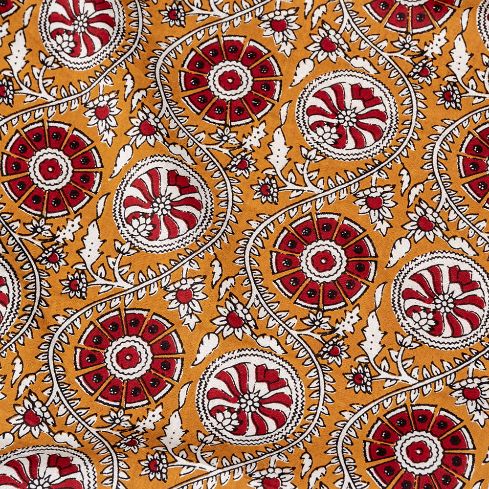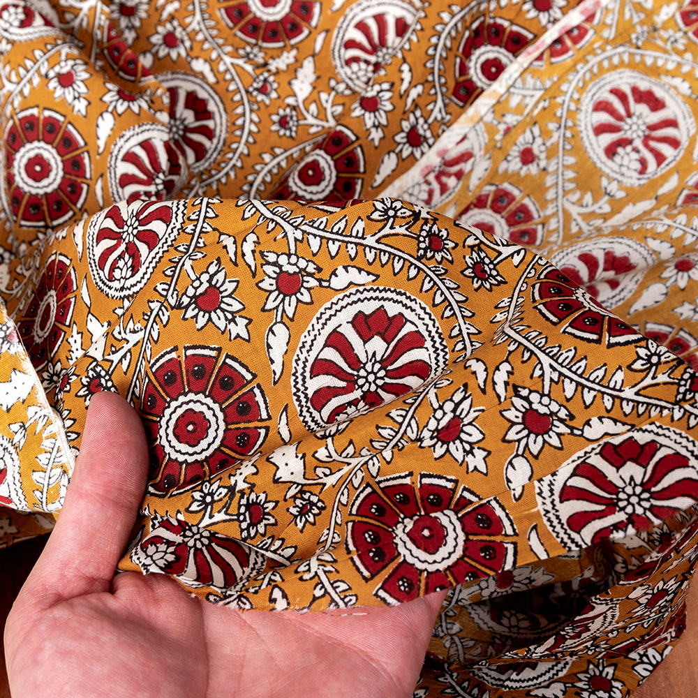 〔1m単位切り売り〕テキスタイルの伝統息づくインドから 昔ながらの更紗模様布 黄土色系〔幅約104cm〕 x 5個