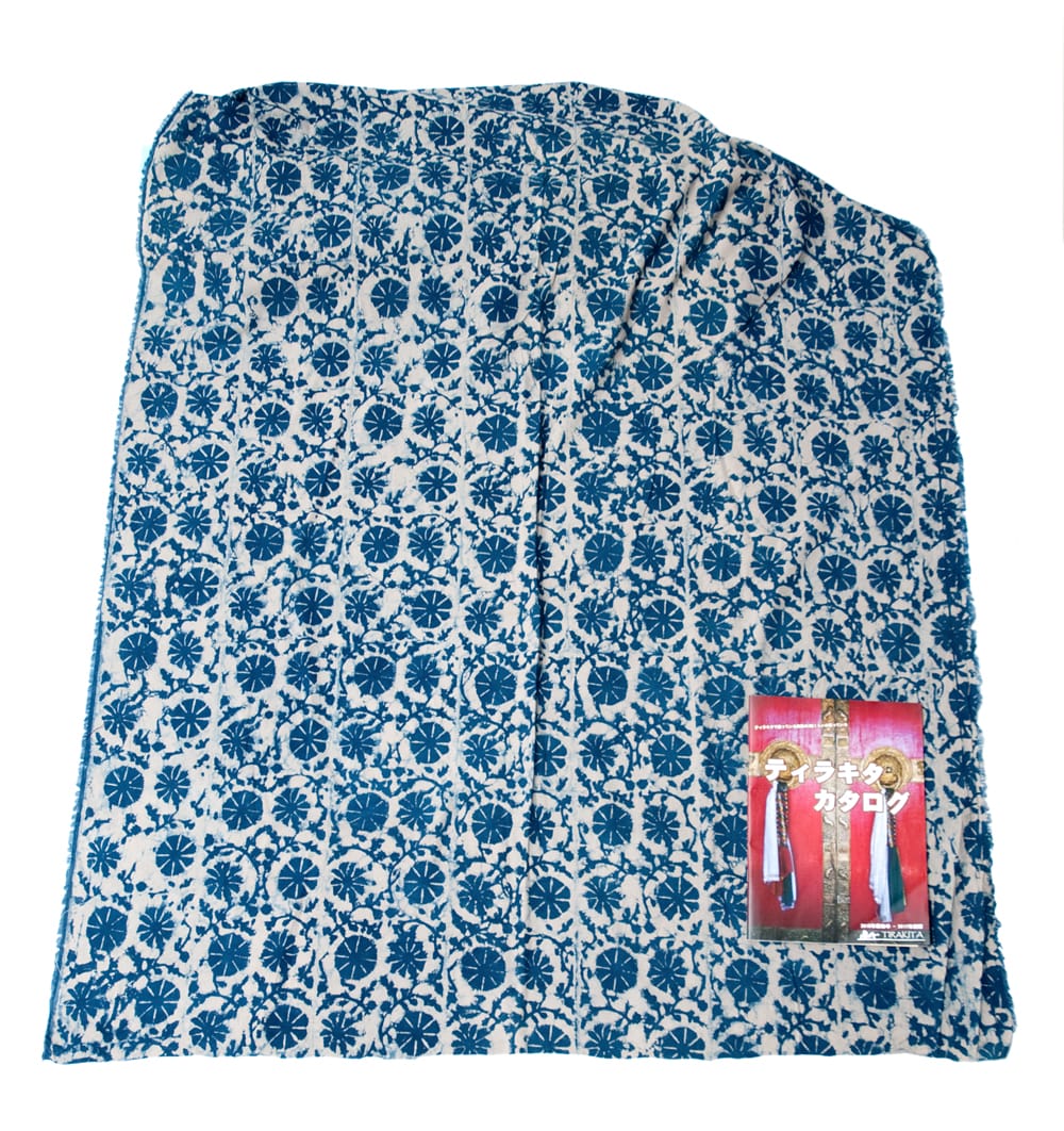 インディゴとの青による色合いが美しく、ウッドブロックの手作りによる模様もとても美しいこちらの布。手芸用の布としてはもちろんインテリア用のカバーや飾り布として様々な場所でお使いいただけます。ソファカバーやカーテン、テーブルクロス等々色々な使いみちが考えられますね。ナチュラルな風合いが良いので、オリジナルのスカーフや壁飾りにしても素敵です。■便利な計り売り!