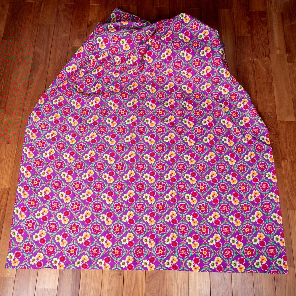 〔1m単位切り売り〕アジアのレトロ花柄ファブリック 生地 東北大花布 ヴィンテージ風 昭和レトロ〔約159cm〕 - パープル x 3個