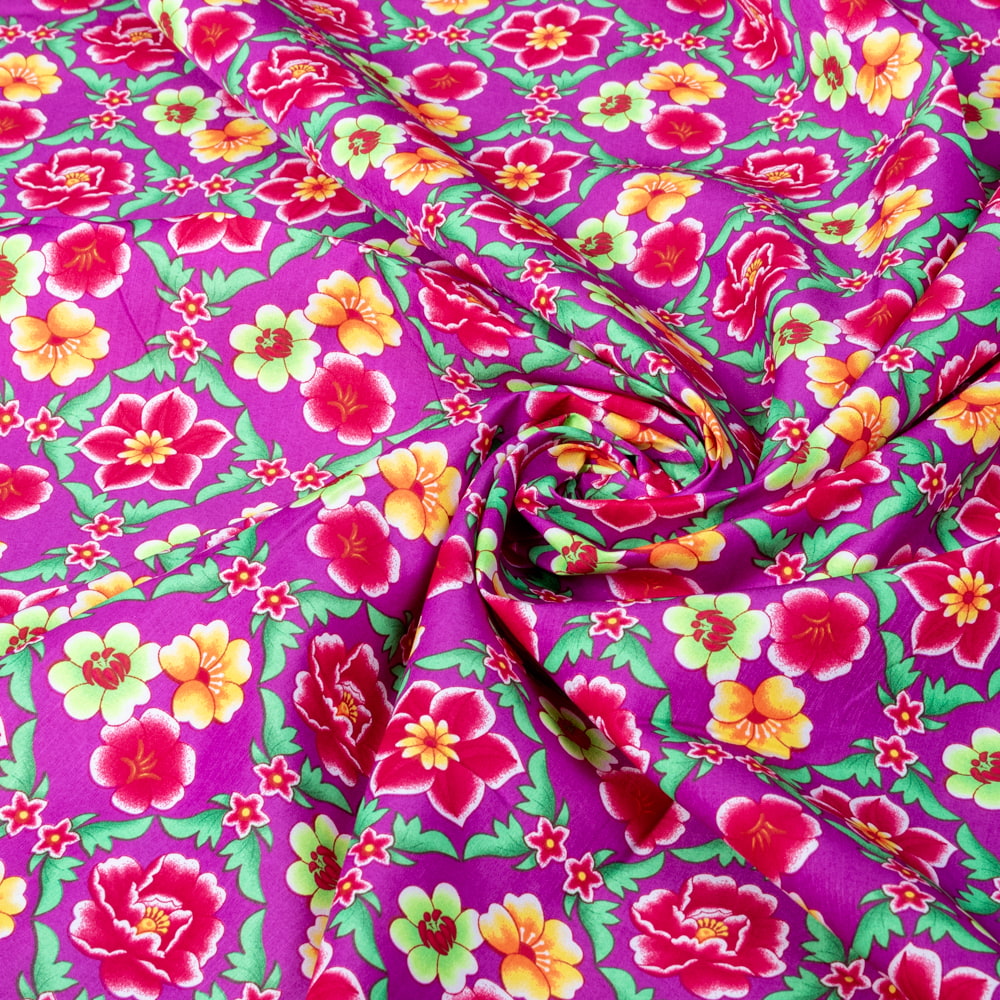 【3個セット】〔1m単位切り売り〕アジアのレトロ花柄ファブリック 生地 東北大花布 ヴィンテージ風 昭和レトロ〔約159cm〕 - パープル