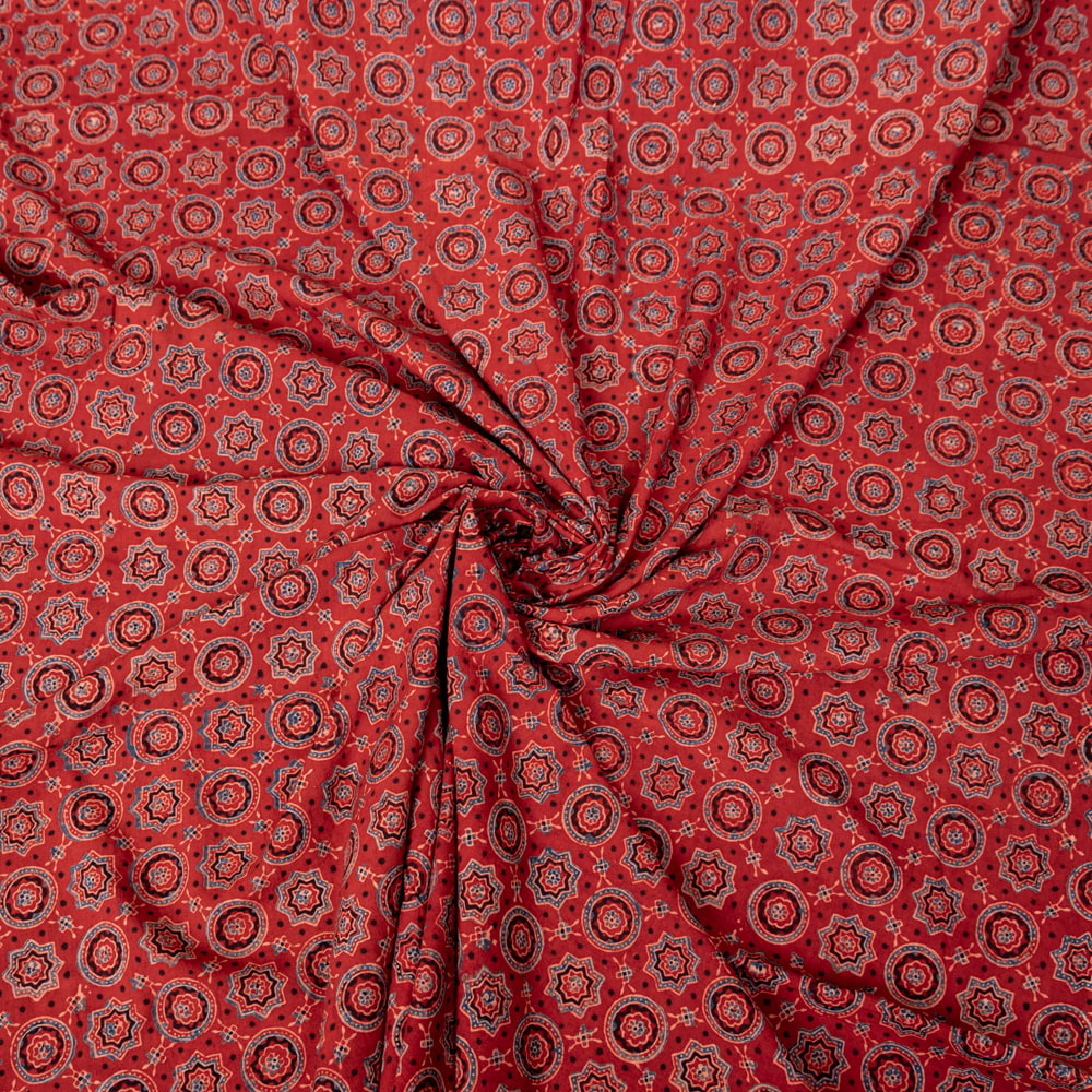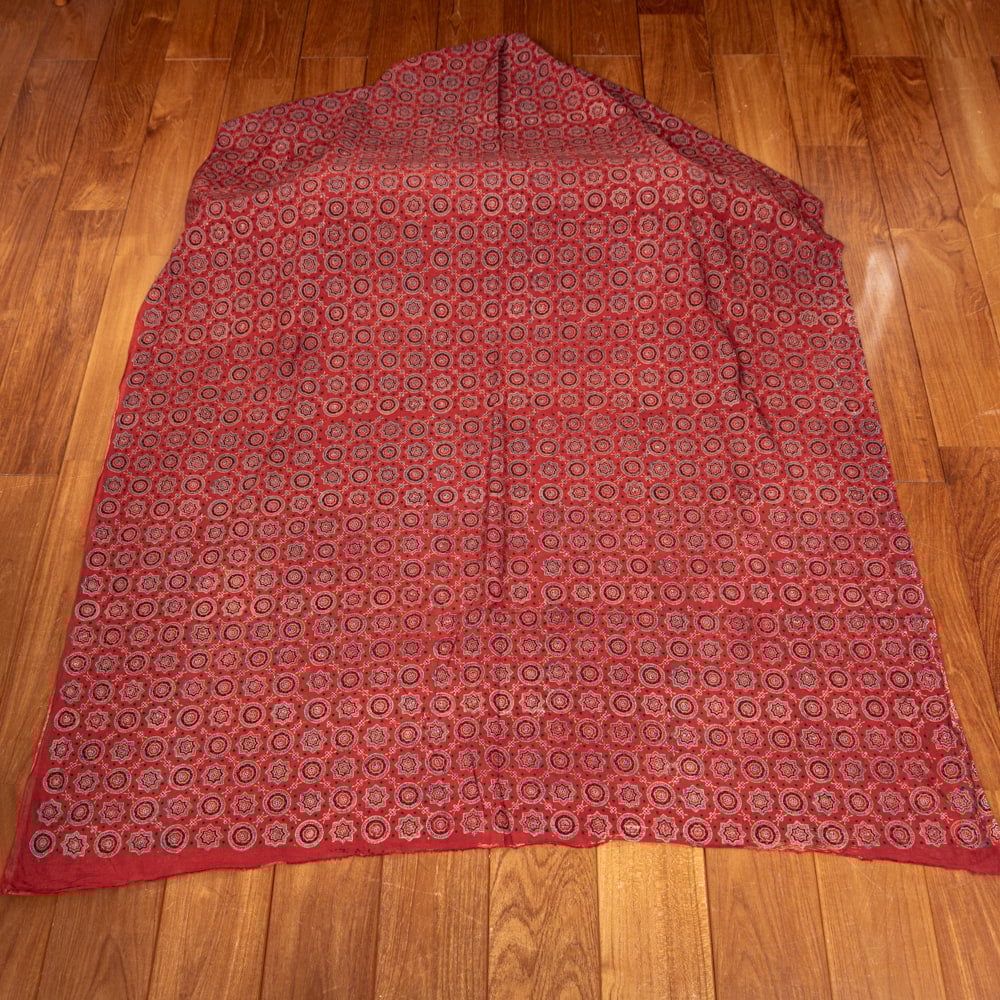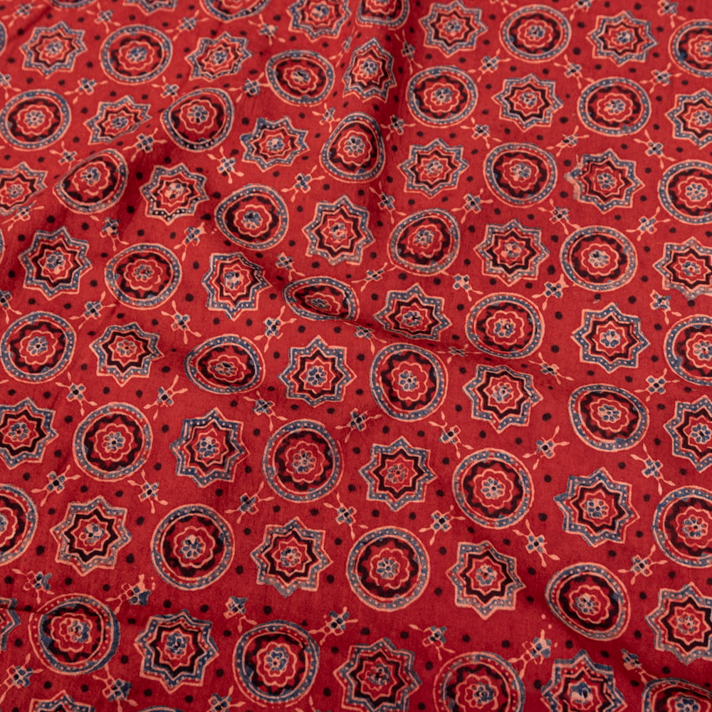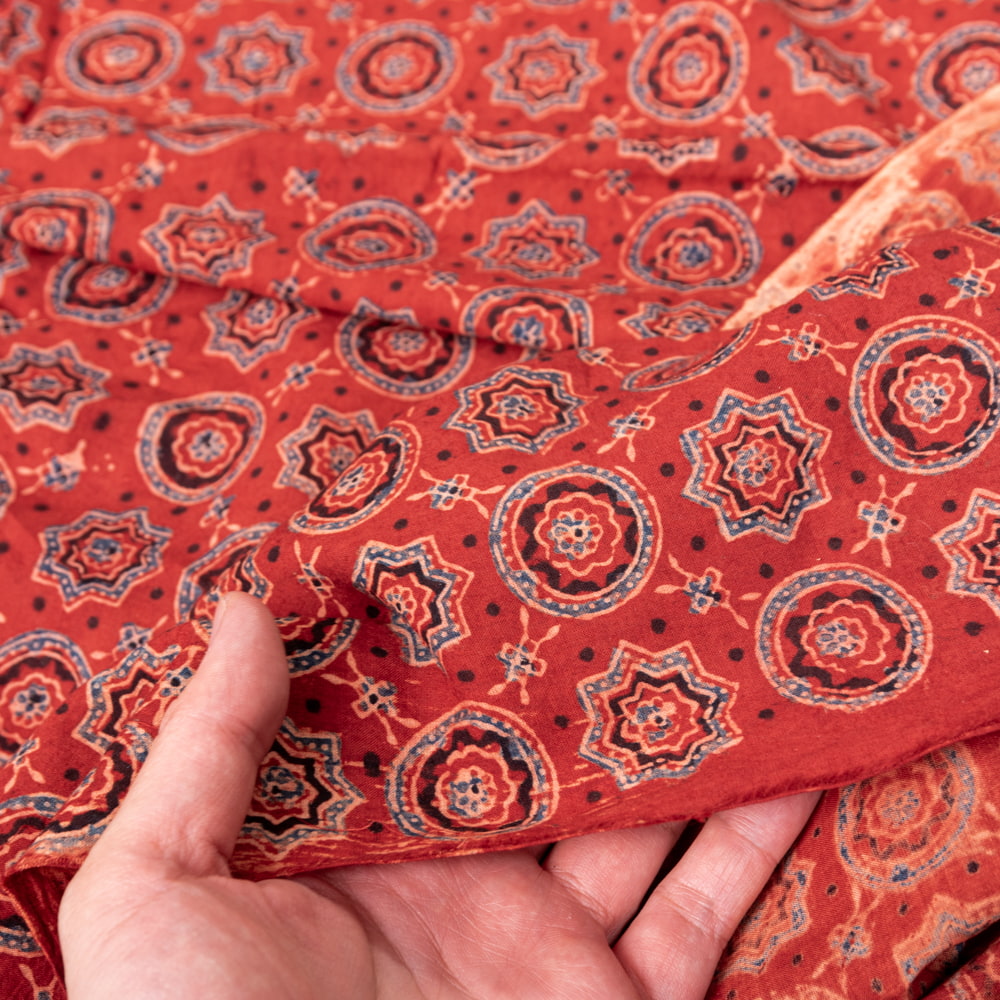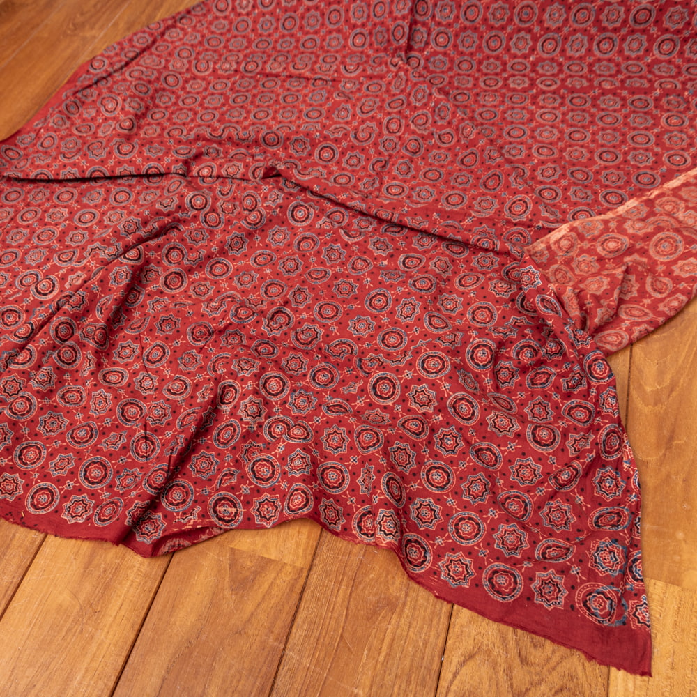 〔1m単位切り売り〕アジュラックプール村からやってきた 昔ながらの木版染めアジュラックデザイン布〔約107cm〕 - レッド系 x 3個