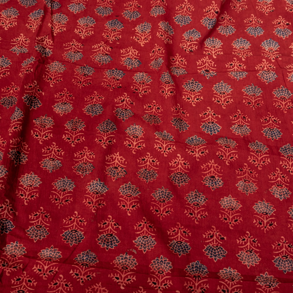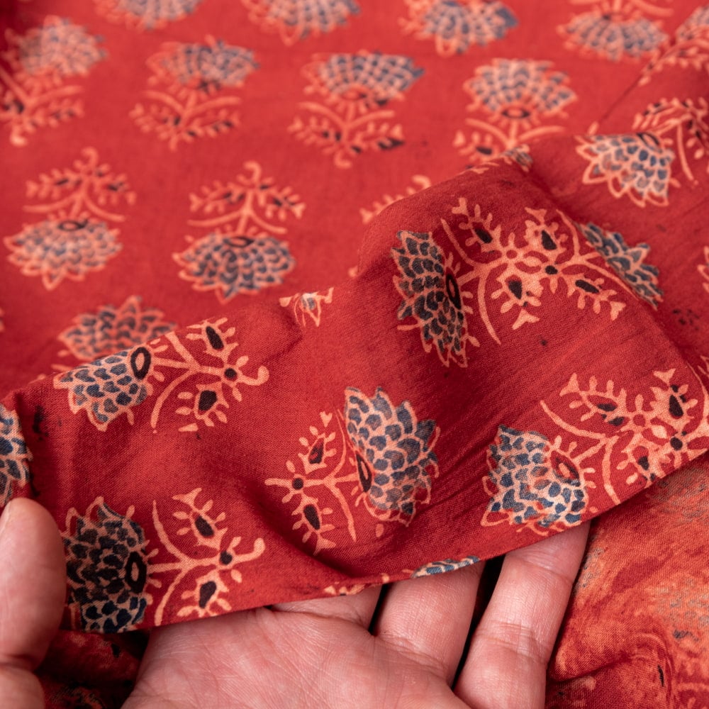 〔1m単位切り売り〕アジュラックプール村からやってきた 昔ながらの木版染め更紗模様布〔約111cm〕 - レッド系 x 3個