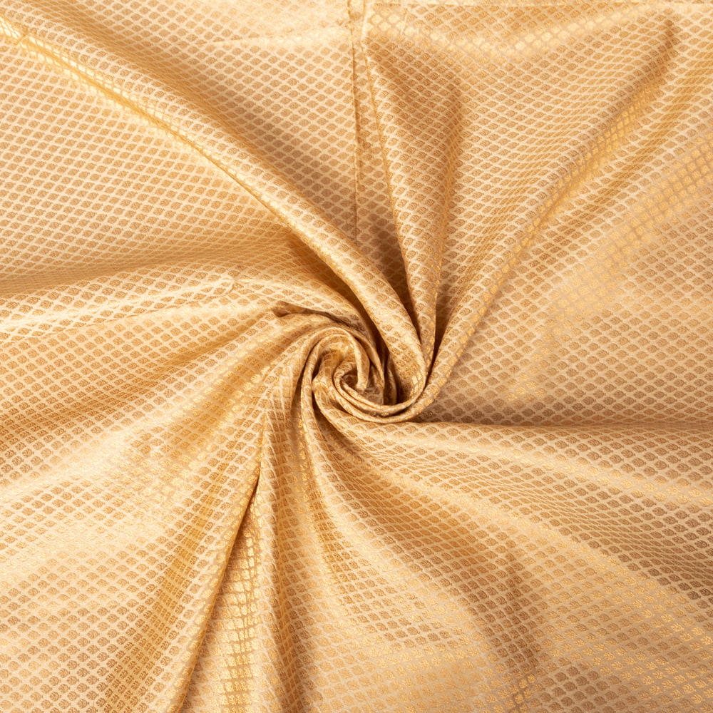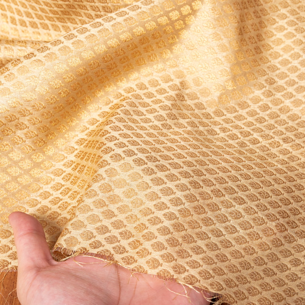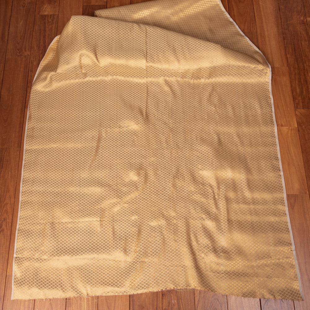 〔1m単位切り売り〕インドの伝統模様布 光沢感のあるゴールド系生地〔幅約110.5cm〕 x 3個