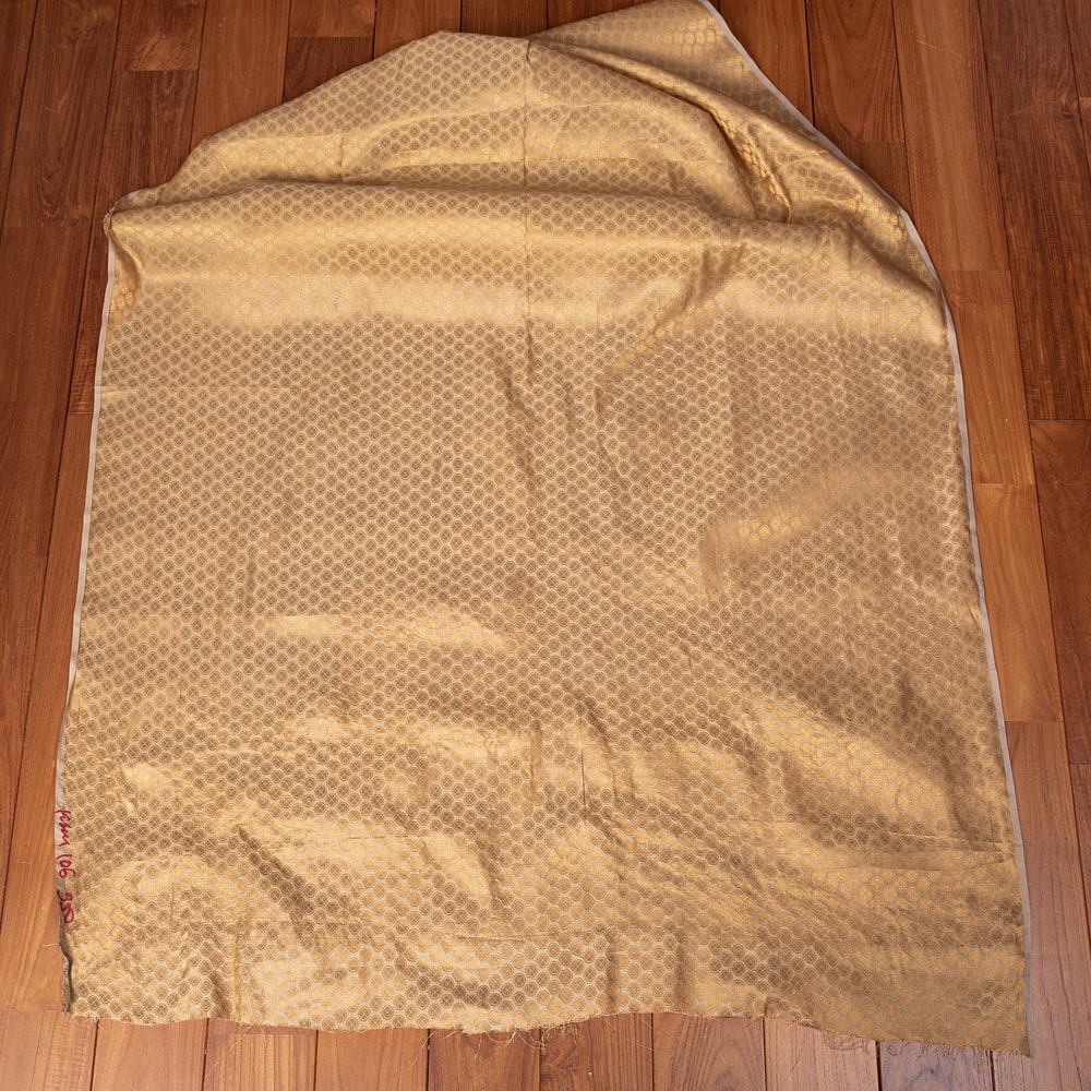〔1m単位切り売り〕インドの伝統模様布 光沢感のあるゴールド系生地〔幅約110cm〕 x 3個