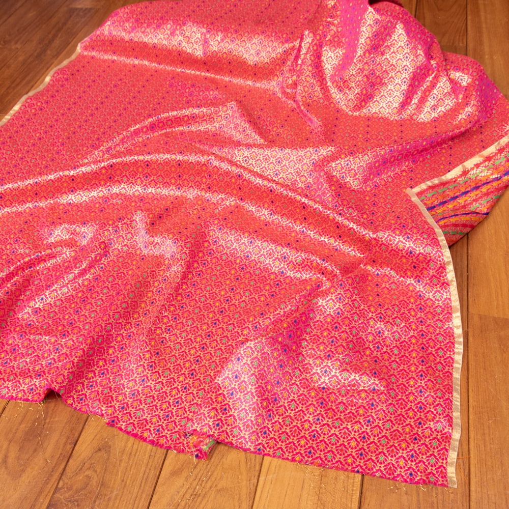 【3個セット】〔1m単位切り売り〕インドの伝統模様布 光沢感のあるブロケード生地 金糸〔約115cm〕ピンク系の写真【3個セット】〔1m単位切り売り〕インドの伝統模様布 光沢感のあるブロケード生地 金糸〔約115cm〕ピンク系 2 - とても雰囲気のある、インドからやって来た切り売りの生地です。【3個セット】〔1m単位切り売り〕インドの伝統模様布 光沢感のあるブロケード生地 金糸〔約115cm〕ピンク系 3 - 全体を広げてみたところです。1mの長さごとにご購入いただけます。【3個セット】〔1m単位切り売り〕インドの伝統模様布 光沢感のあるブロケード生地 金糸〔約115cm〕ピンク系 4 - インドならではの布ですね【3個セット】〔1m単位切り売り〕インドの伝統模様布 光沢感のあるブロケード生地 金糸〔約115cm〕ピンク系 5 - 生地の拡大写真です【3個セット】〔1m単位切り売り〕インドの伝統模様布 光沢感のあるブロケード生地 金糸〔約115cm〕ピンク系 6 - 陰影があるとこのような感じになります【3個セット】〔1m単位切り売り〕インドの伝統模様布 光沢感のあるブロケード生地 金糸〔約115cm〕ピンク系 7 - 生地の拡大写真です【3個セット】〔1m単位切り売り〕インドの伝統模様布 光沢感のあるブロケード生地 金糸〔約115cm〕ピンク系 8 - 類似サイズ品を1m切ってみたところです。横幅がしっかりあるので、結構沢山使えますよ。【3個セット】〔1m単位切り売り〕インドの伝統模様布 光沢感のあるブロケード生地 金糸〔約115cm〕ピンク系 9 - 衣料品やバッグなどの手芸用素材として、カーテンやカバーなどアイデア次第でさまざまな用途にご使用いただけます。