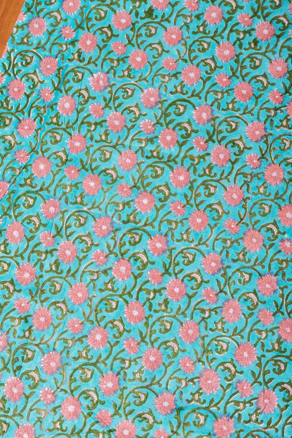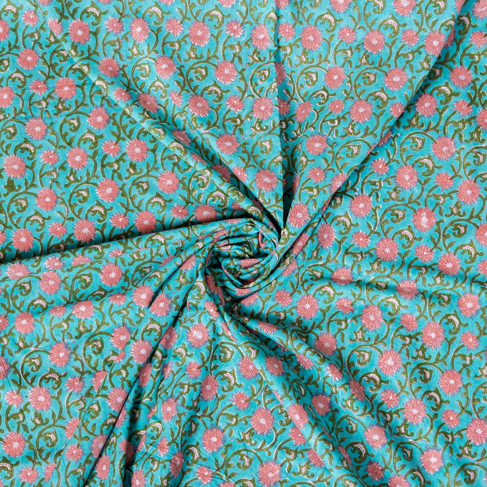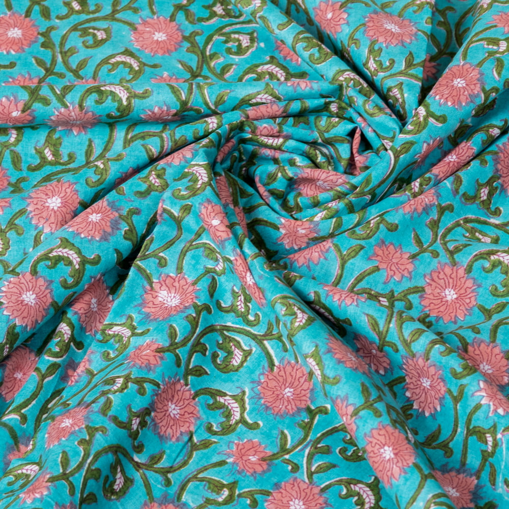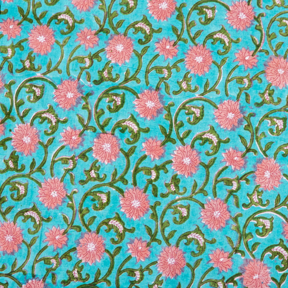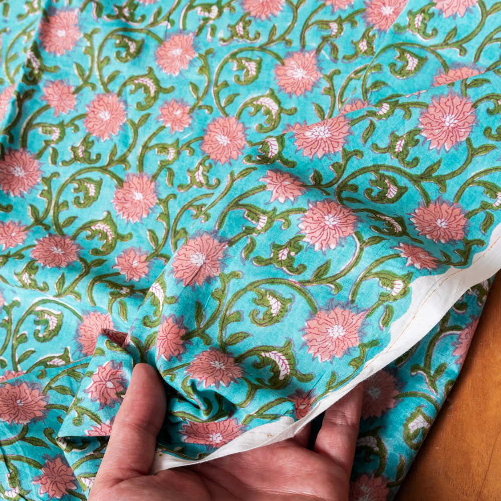 とってもかわいい生地がジャイプルからやってきました。どこかプロヴァンスなテイストも感じさせる、魅力的な色彩とデザイン。職人さんが全て手作りしており、インドらしい木版と鮮やかな色彩がきわだつ、インド綿100%のファブリックです。ナチュラルな風合いは、派手すぎずほどよく上品な雰囲気で、どんなお部屋にも馴染み、相性良くフィットしてくれそうです。