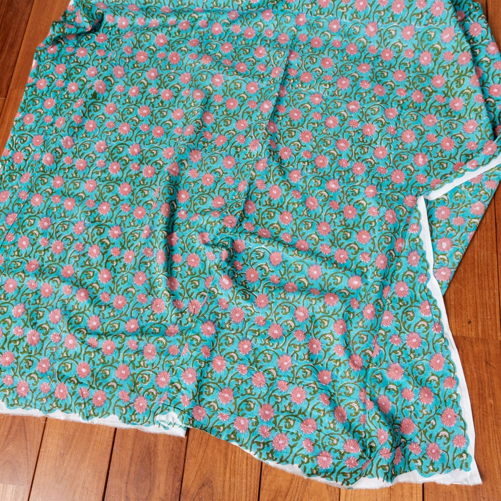〔1m単位切り売り〕ジャイプル 職人手作り木版染め 色彩美しいボタニカルデザイン おしゃれ 生地 花柄 テーブルクロス 刺繍素材などへ〔幅約109cm〕 - グリーン系 x 3個