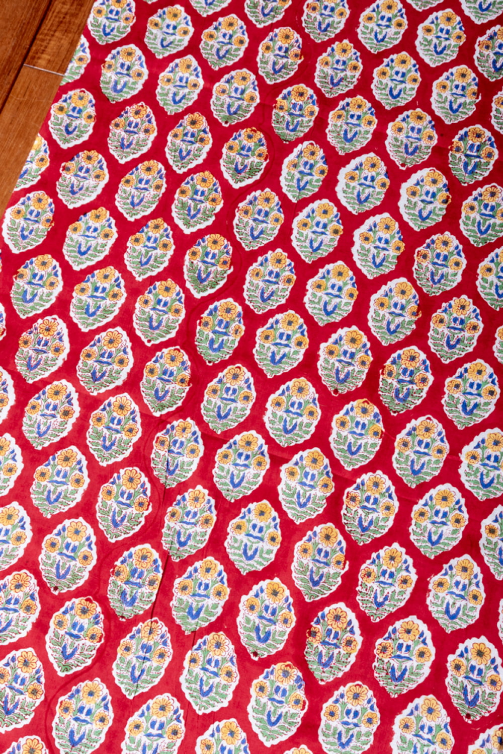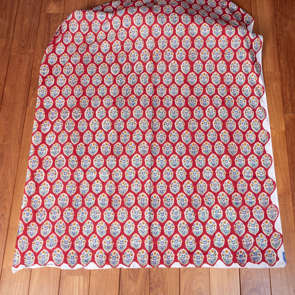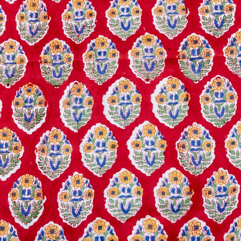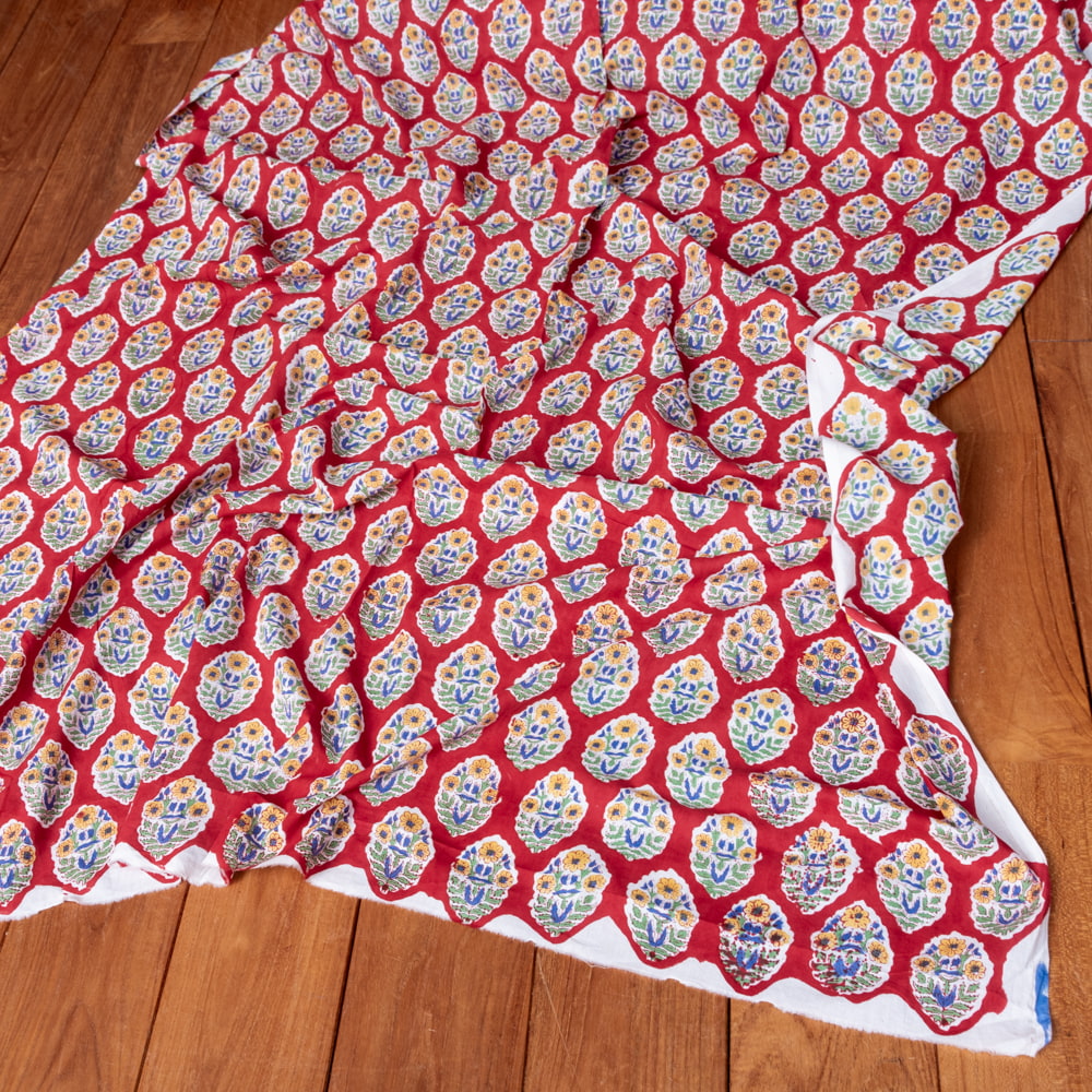 〔1m単位切り売り〕ジャイプル 職人手作り木版染め 色彩美しいボタニカルデザイン おしゃれ 生地 花柄 テーブルクロス 刺繍素材などへ〔幅約111cm〕 - レッド系 x 3個