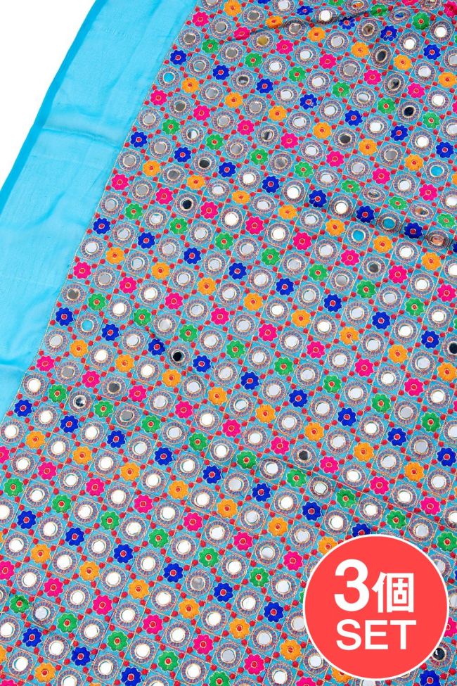 【3個セット】〔1m単位切り売り〕ミラーワーク付きラジャスタンの刺繍布〔107cm〕 - 水色