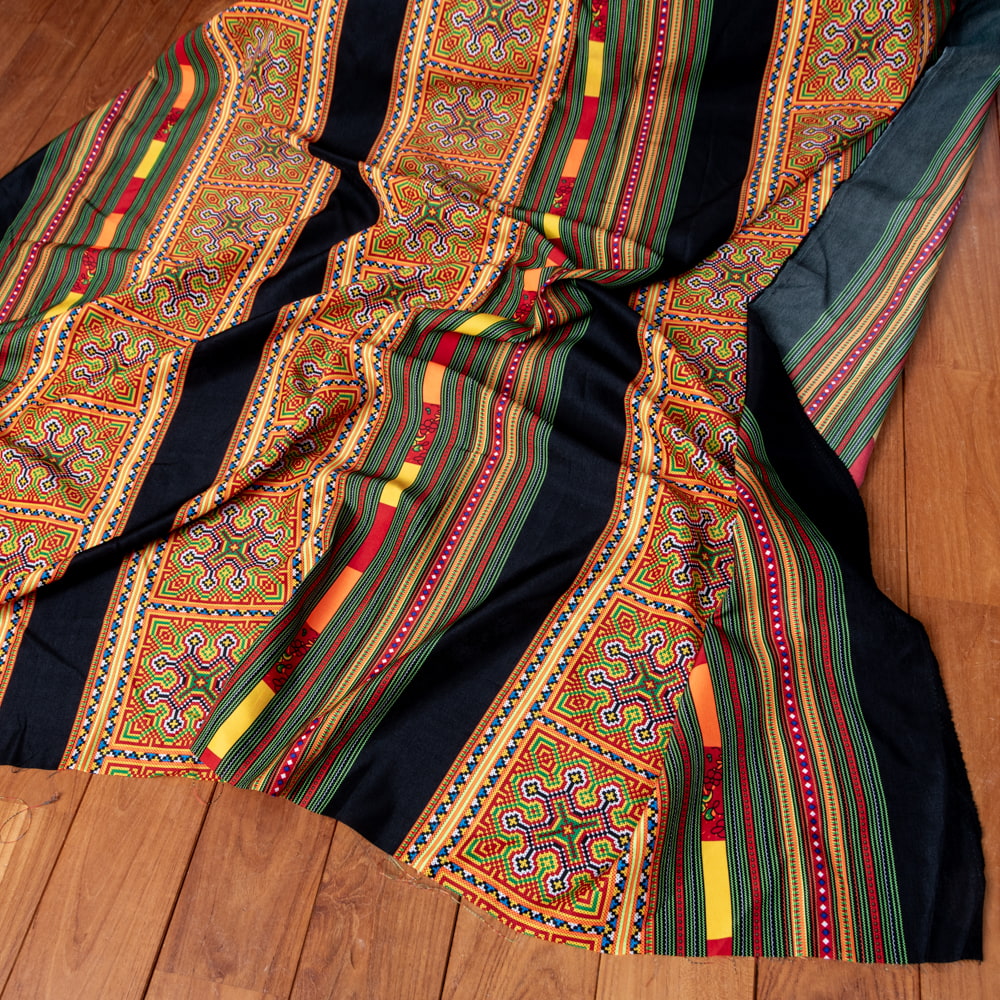 〔1m単位切り売り〕モン族の刺繍風プリントファブリック 生地 少数民族 フォークロア 民俗的 トライバル〔約160cm〕 x 3個