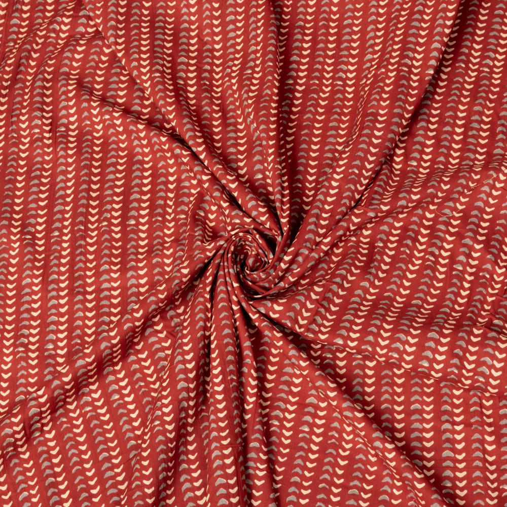 〔1m単位切り売り〕伝統息づく南インドから 昔ながらの更紗模様布〔約105cm〕レンガ系 x 3個