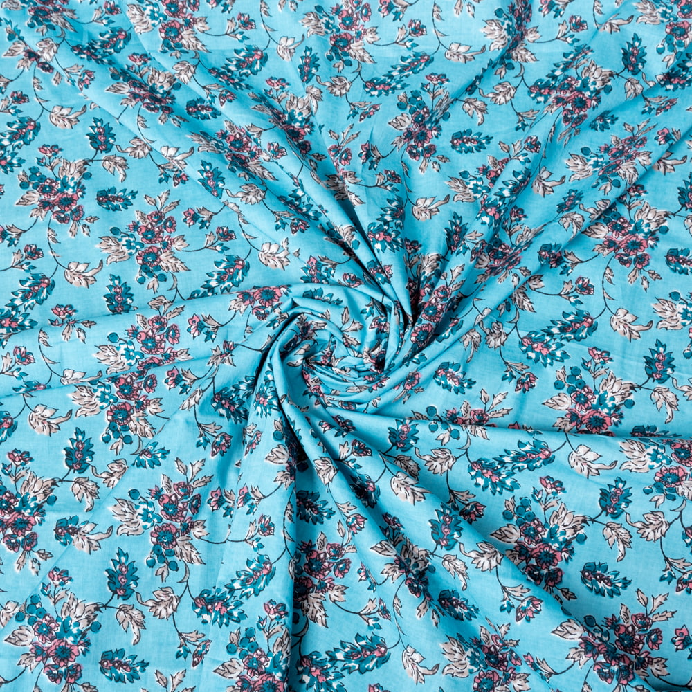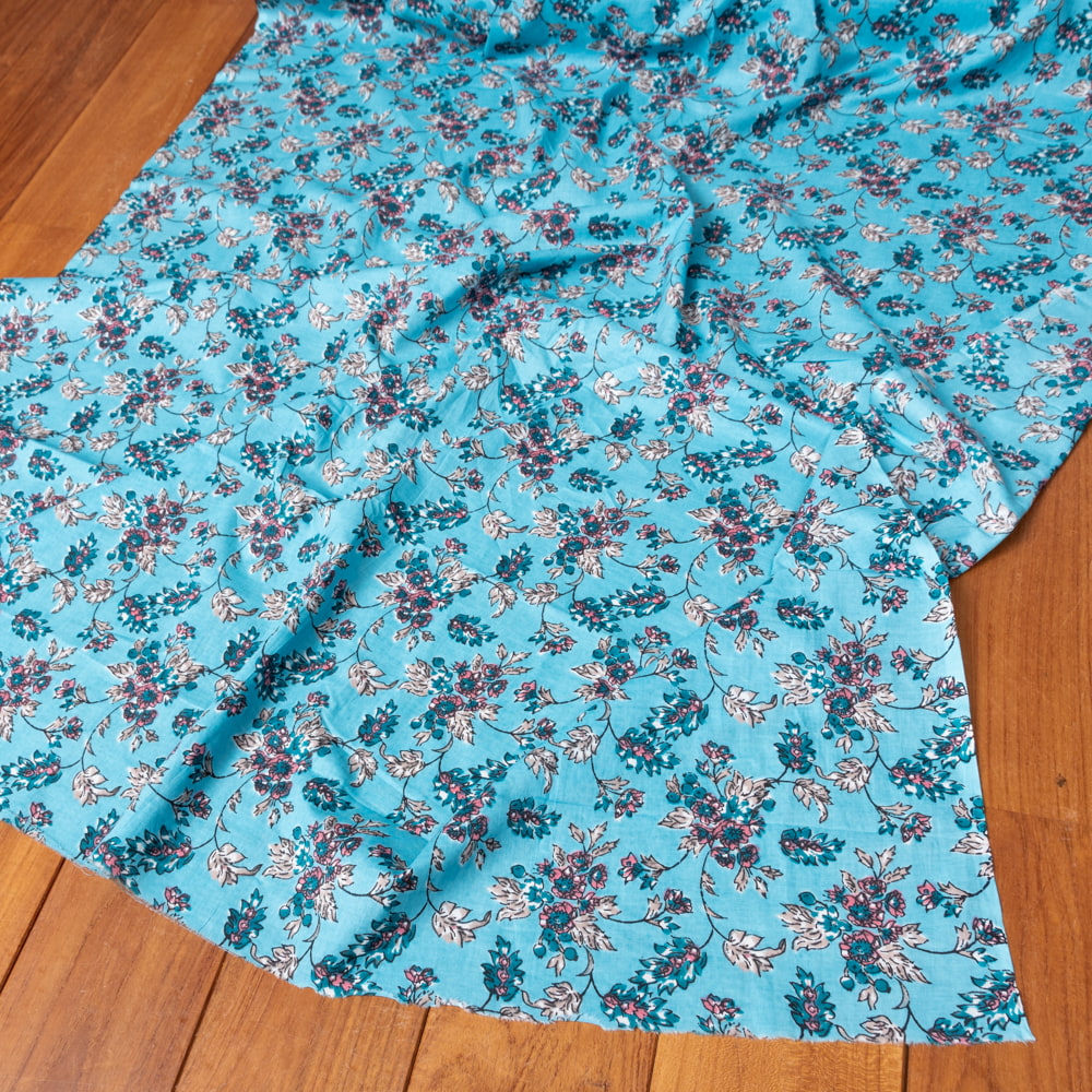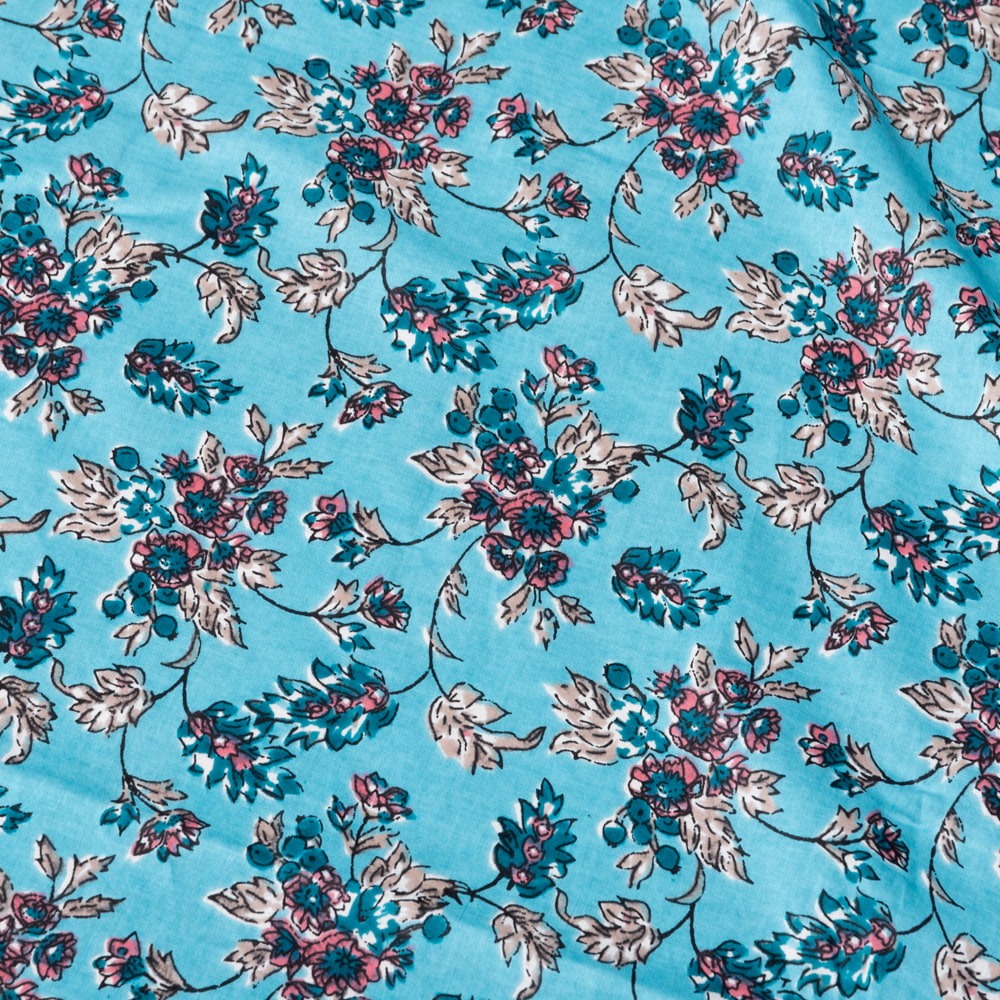 〔1m単位切り売り〕伝統息づく南インドから 昔ながらの更紗模様布〔約105cm〕水色系 x 3個