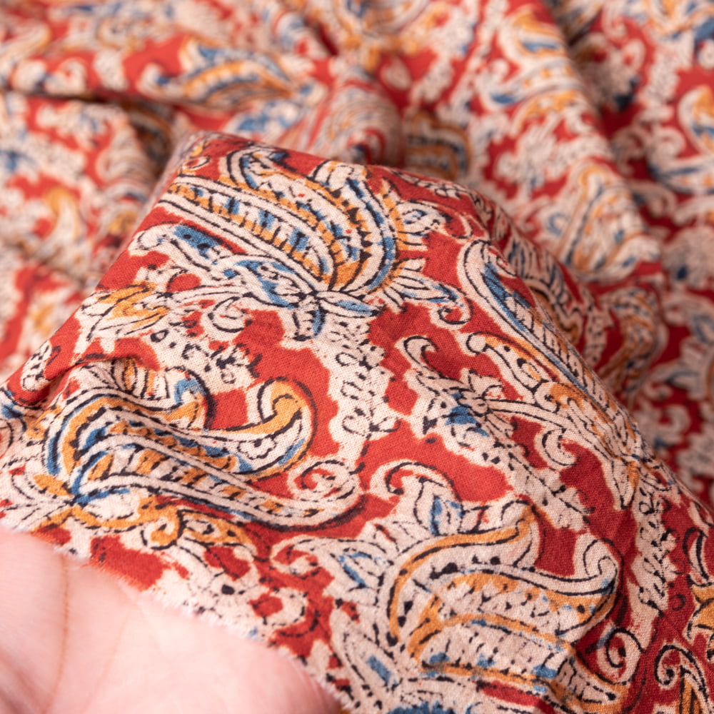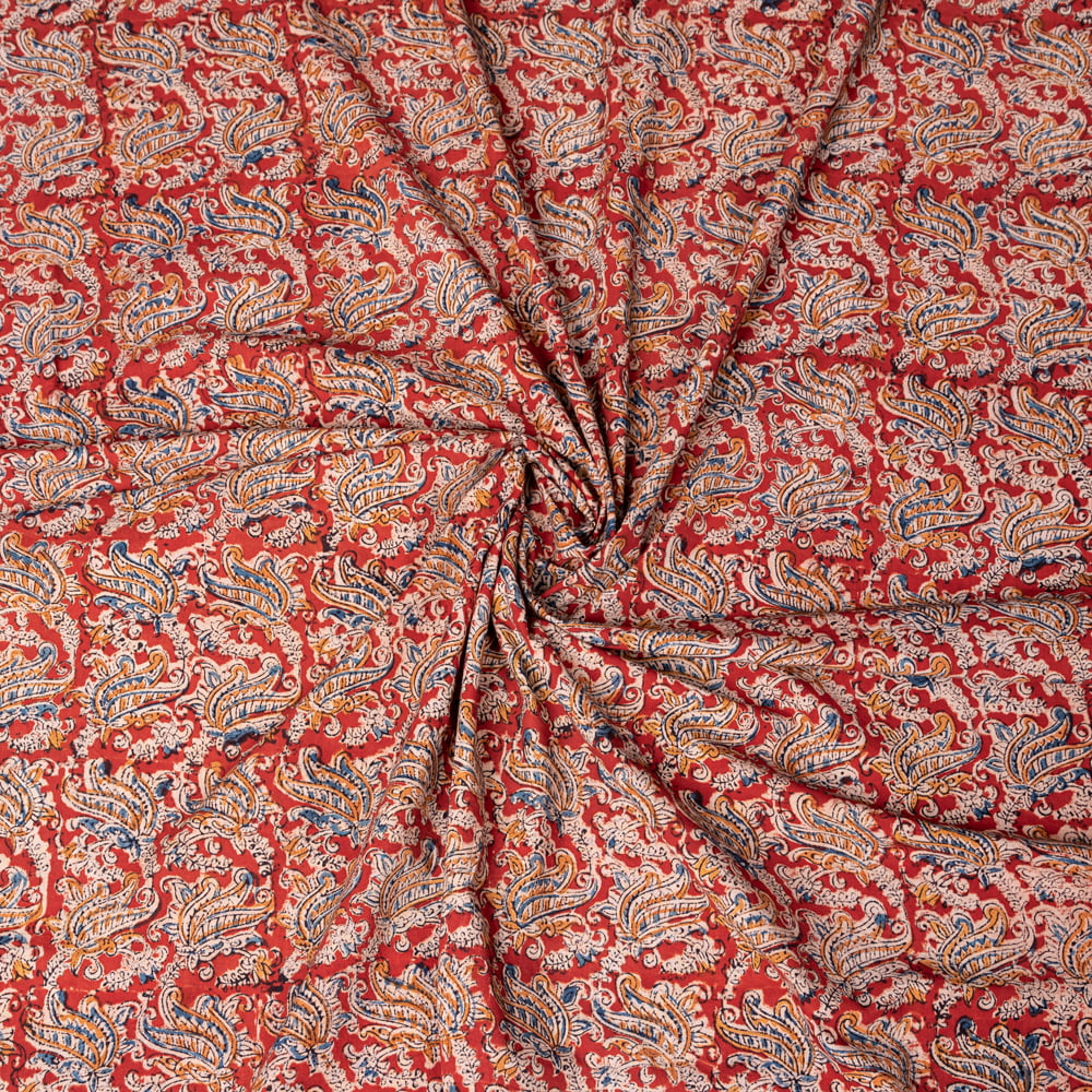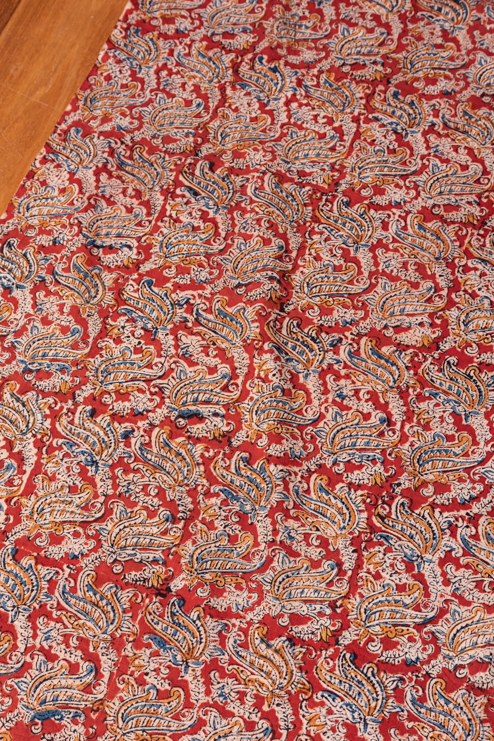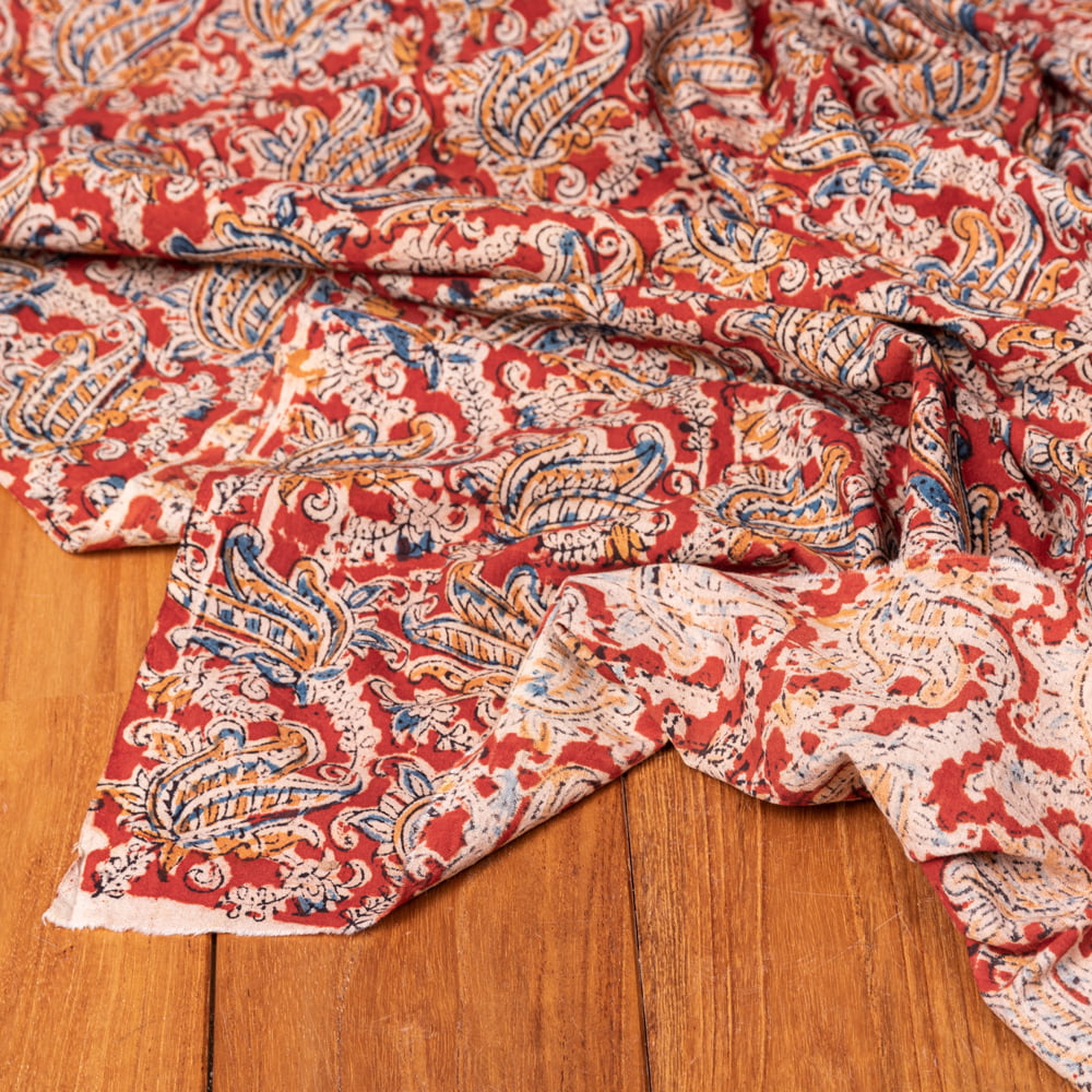 〔1m単位切り売り〕伝統息づく南インドから 昔ながらの木版染め更紗模様布 - 赤系〔横幅:約116cm〕 x 3個
